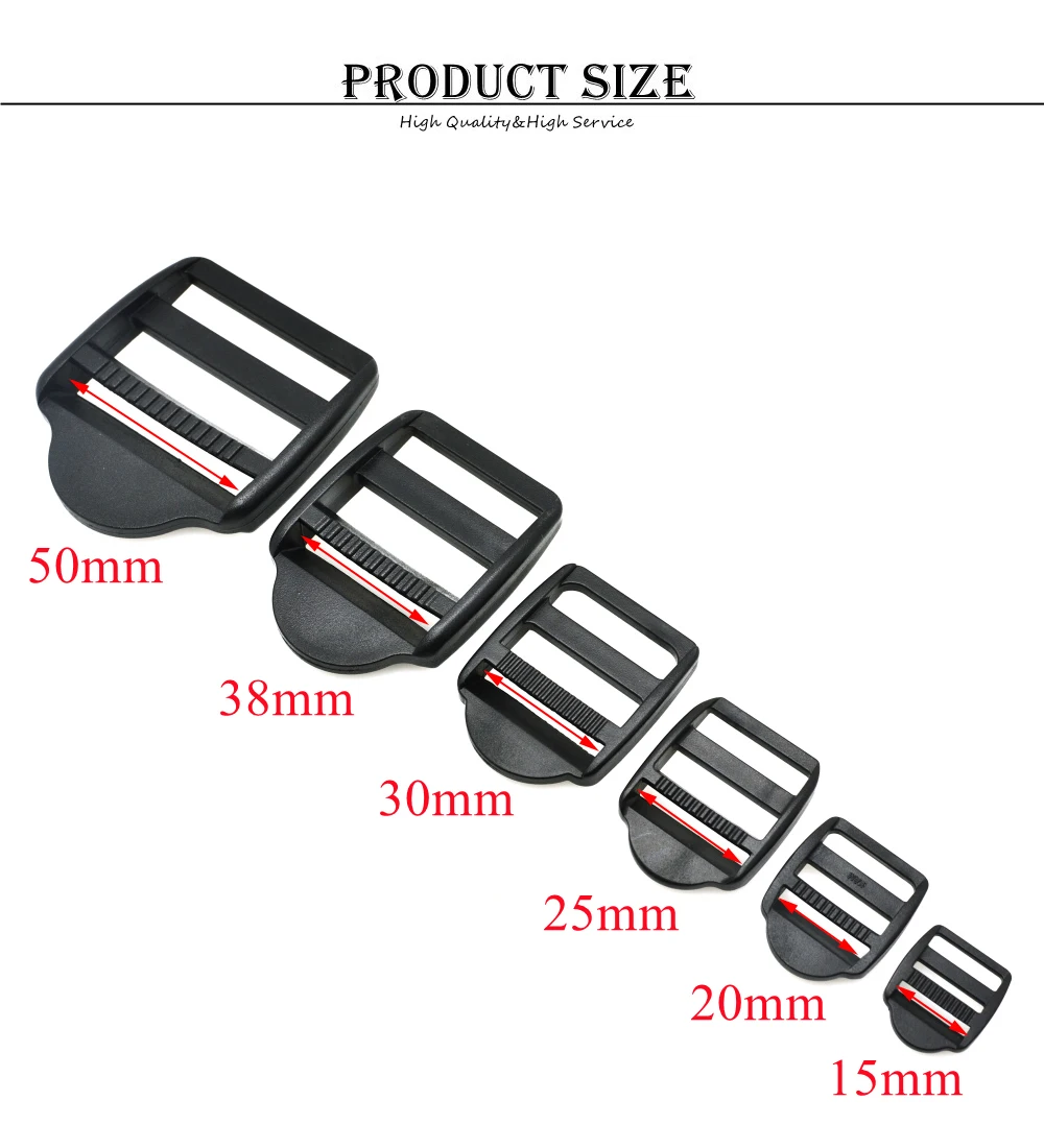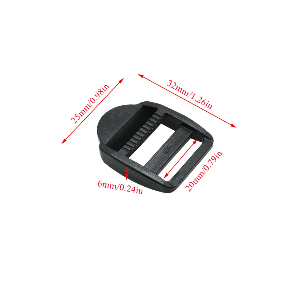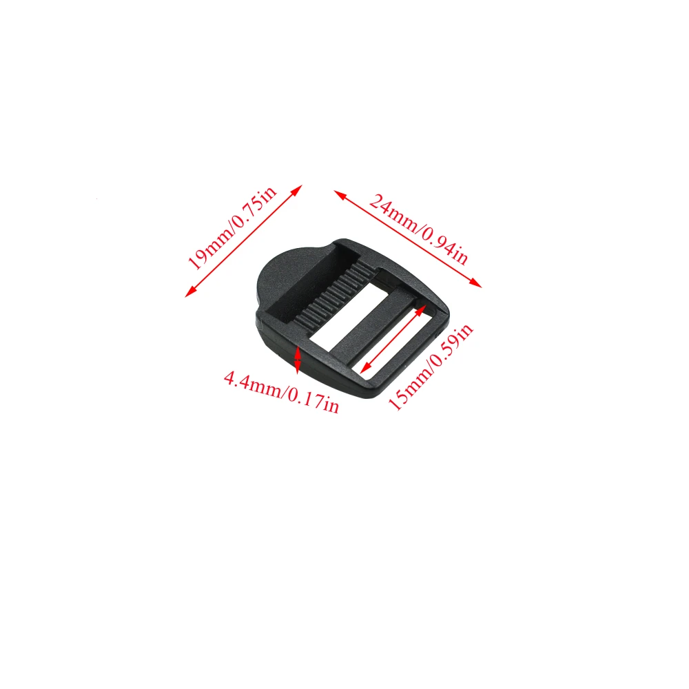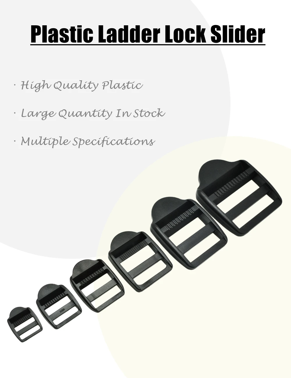 5 unids/pack cerradura de escalera deslizador hebillas de plástico correas de mochila correas negras 15-50mm