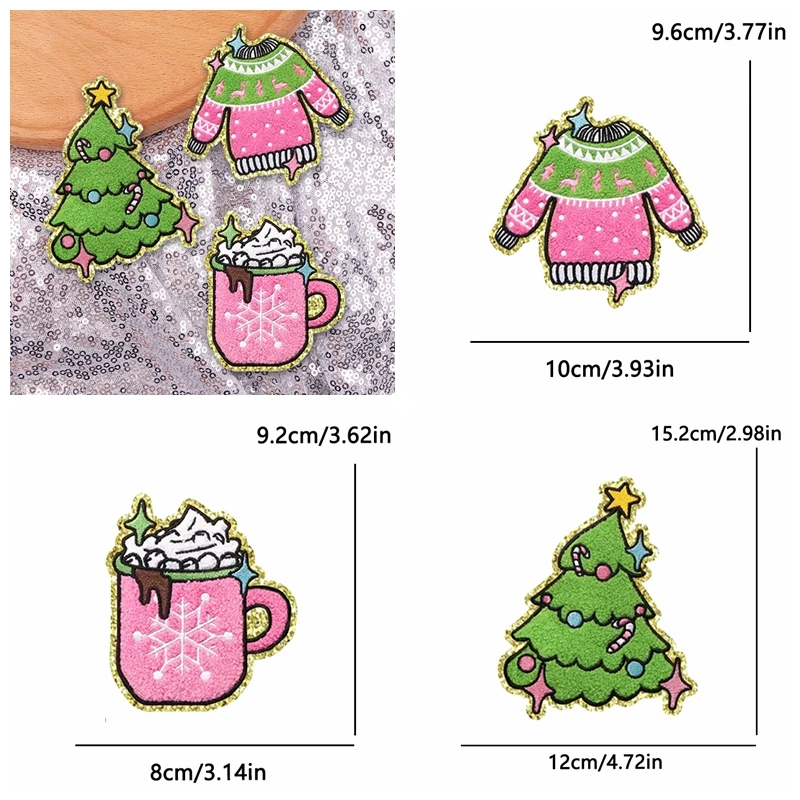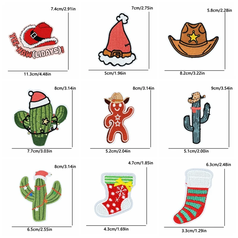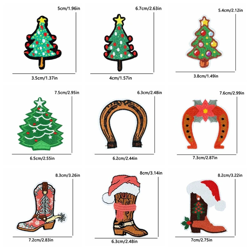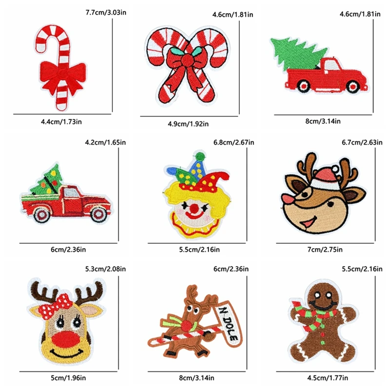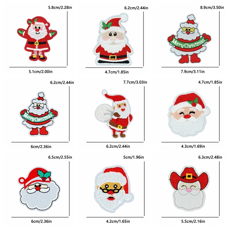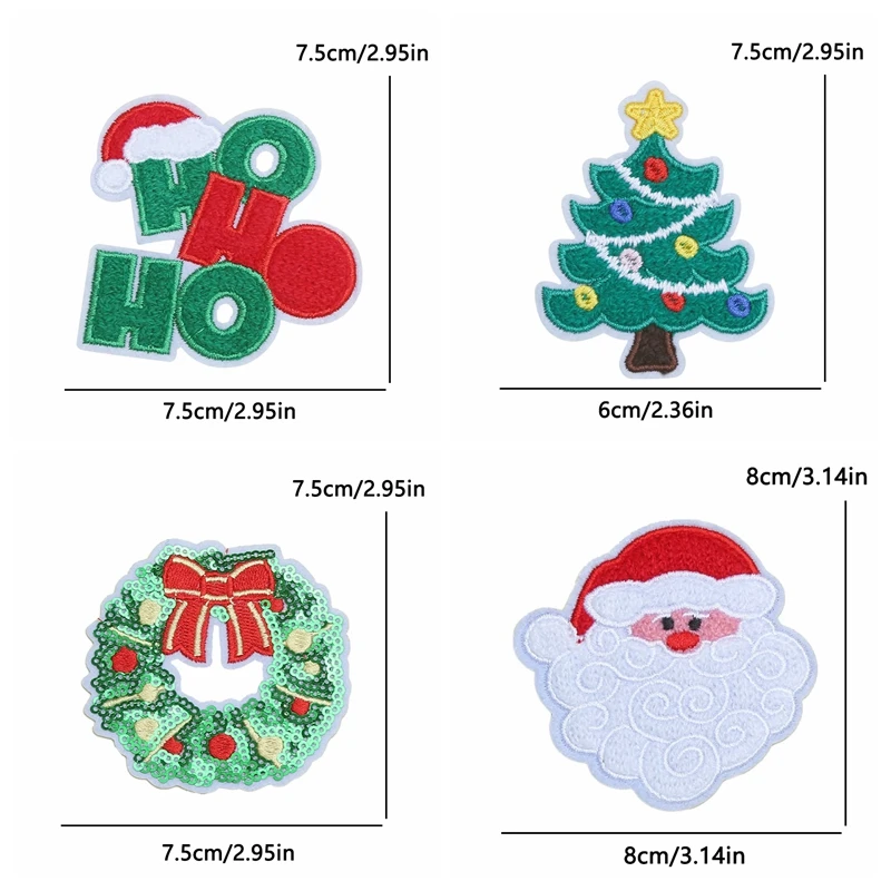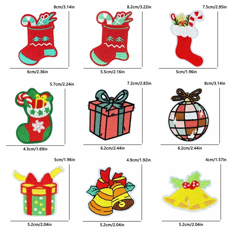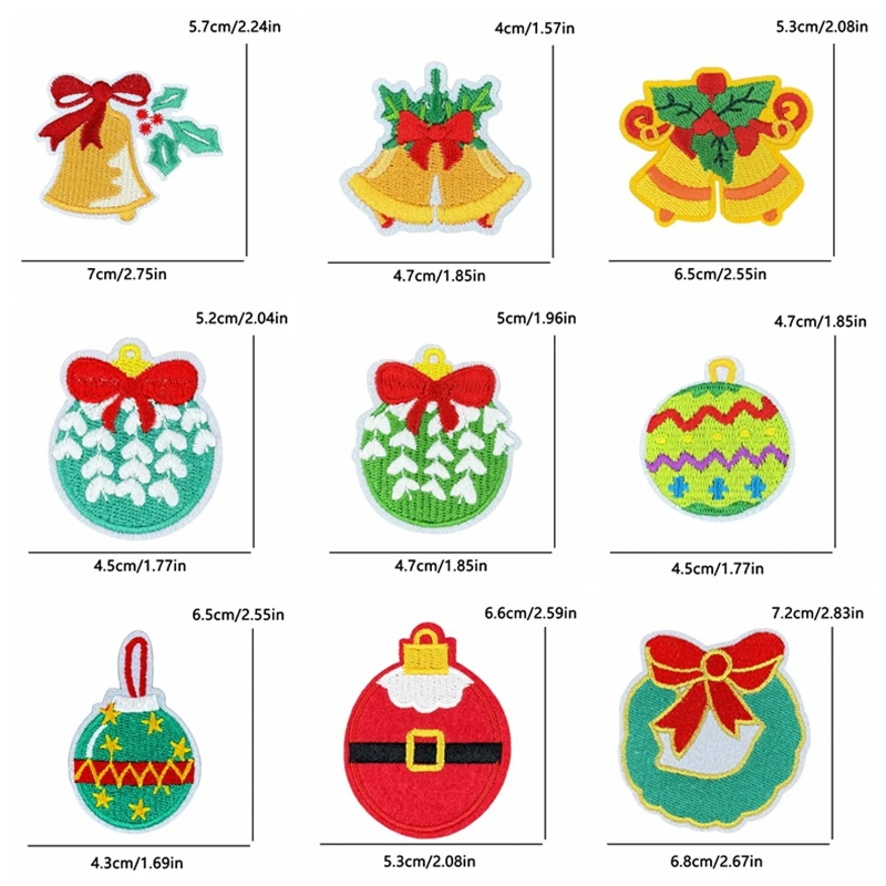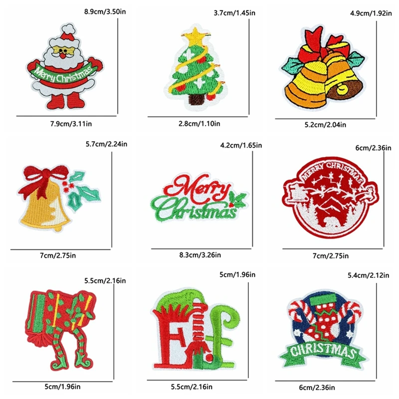 5 unids/set decoraciones navideñas parches de hierro para ropa parche bordado de campana de alegría de Papá Noel aplique de regalo de Carnaval