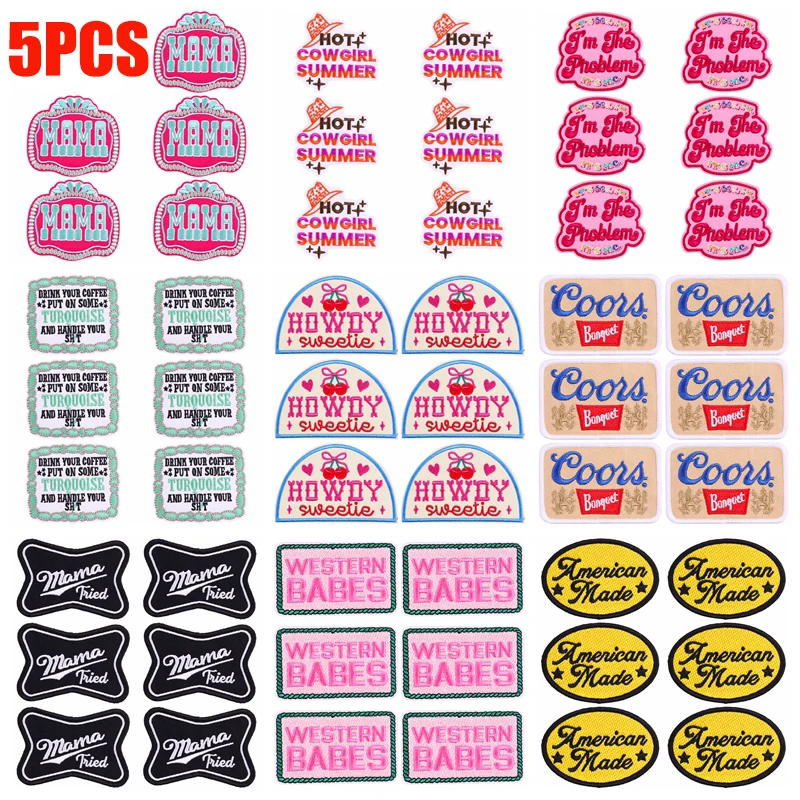 5 unids/set chaquetas mochila parches bordados DIY dibujos animados/lema de letras parche hierro en parches para ropa coser pegatinas insignias