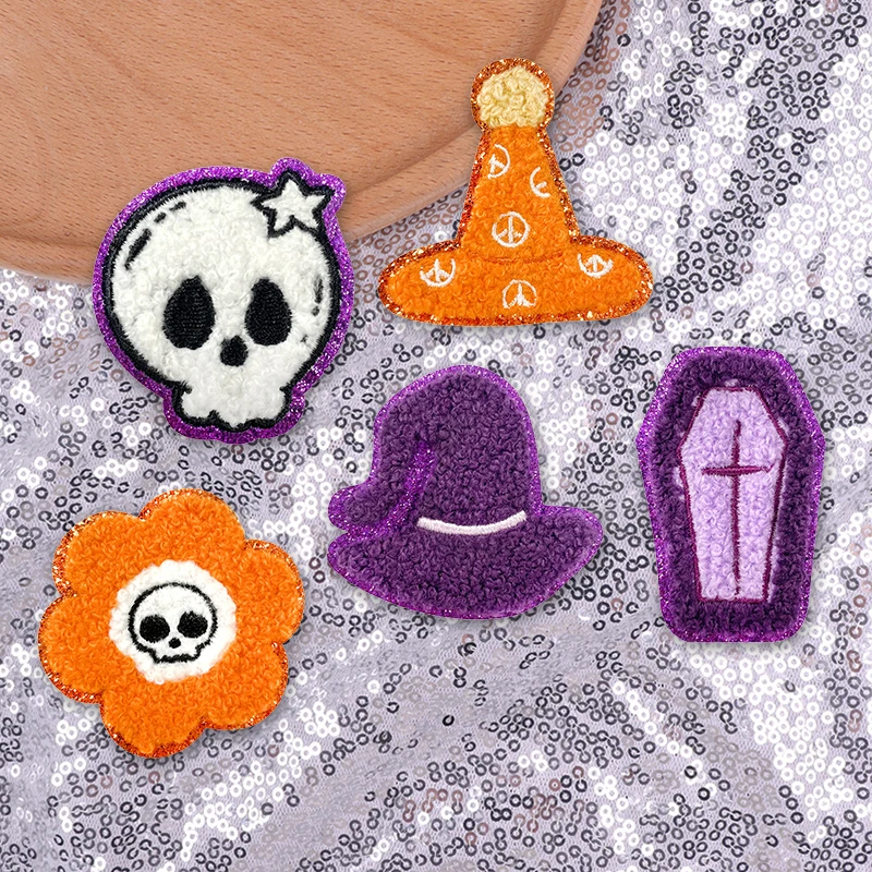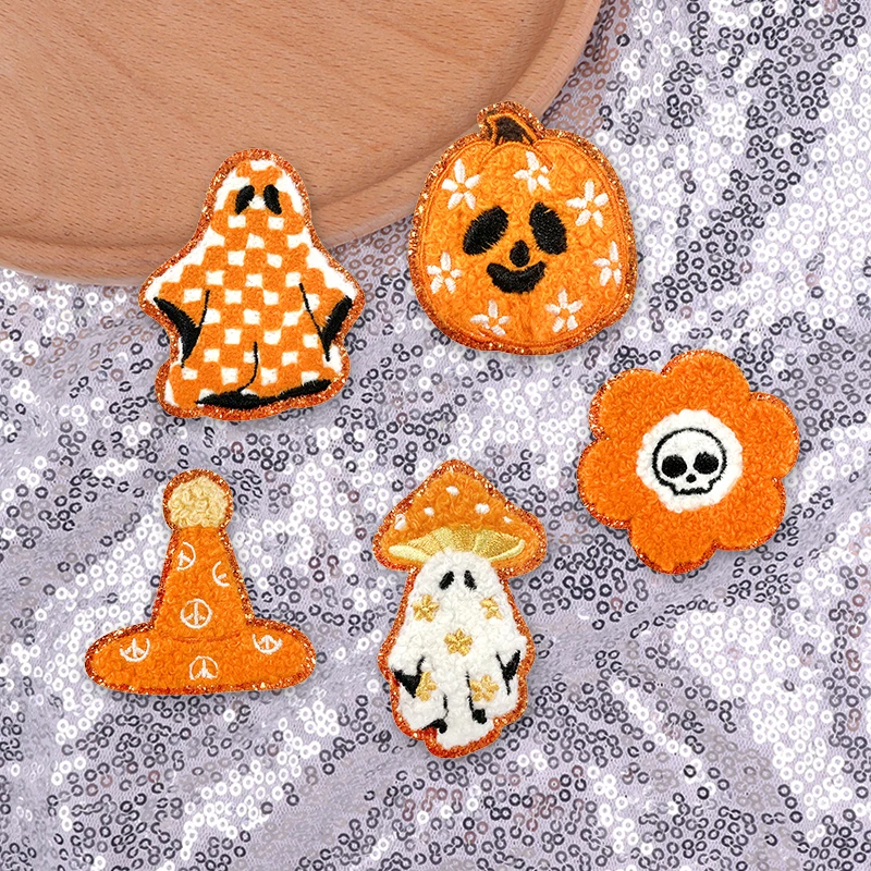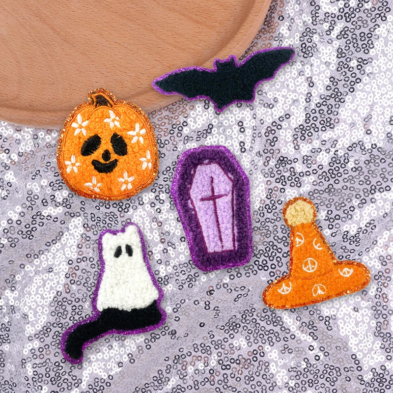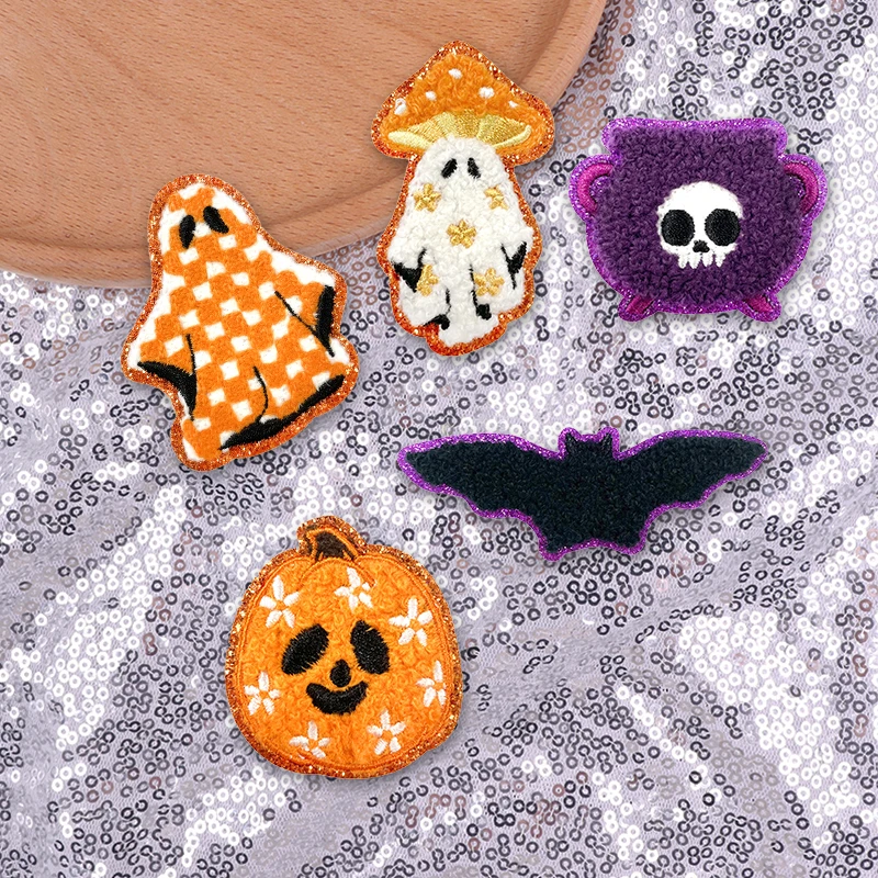 5 unids/set insignias de Halloween parche de hierro para ropa parche bordado de calabaza de calavera fantasma parches en decoraciones de ropa apliques DIY