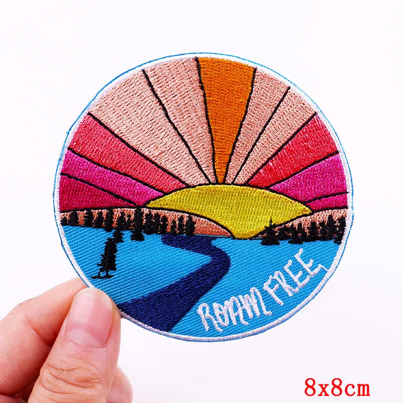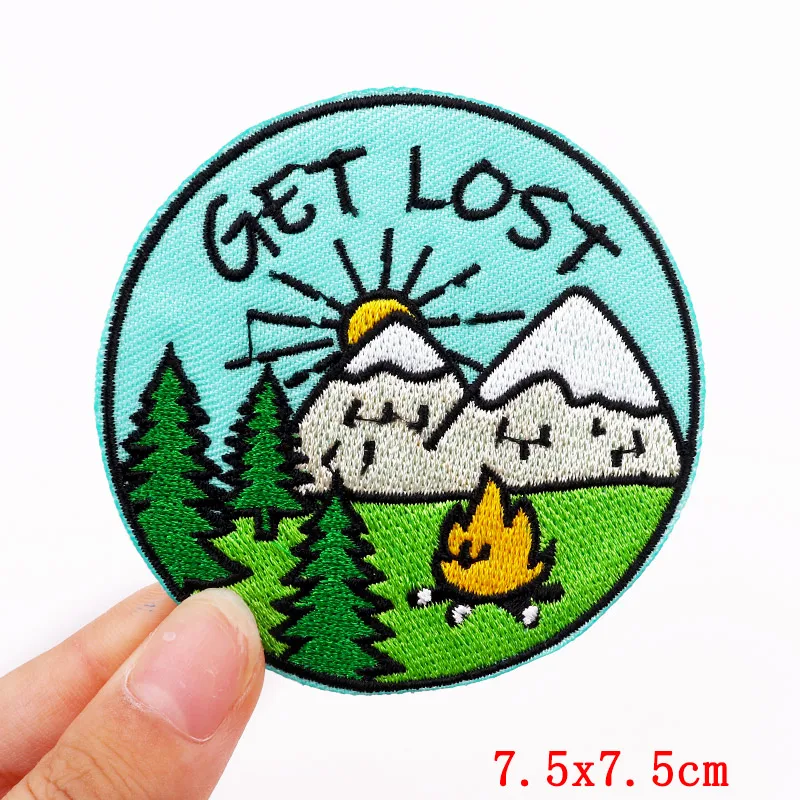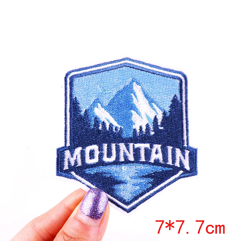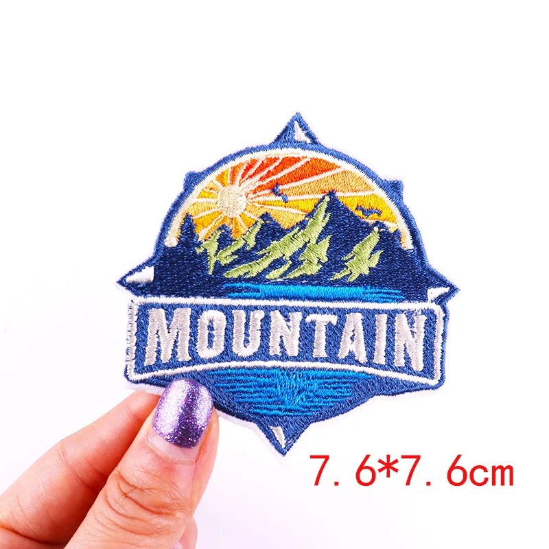 5 unids/set Montaña aventura parche bordado mochila sombreros coser insignias cámara seta onda hierro en parches para ropa DIY