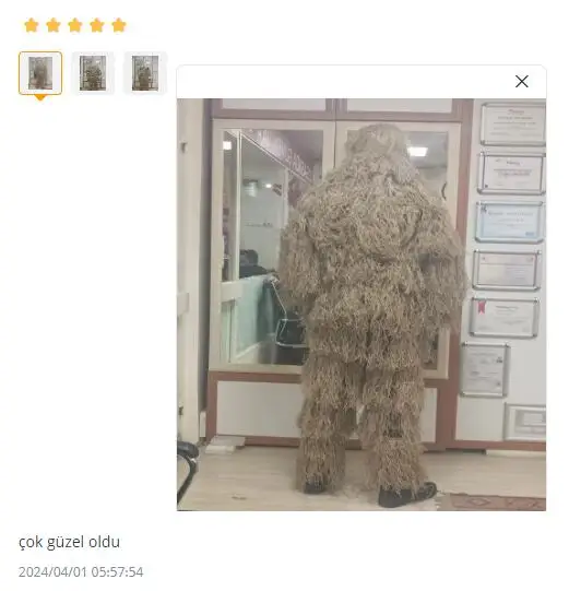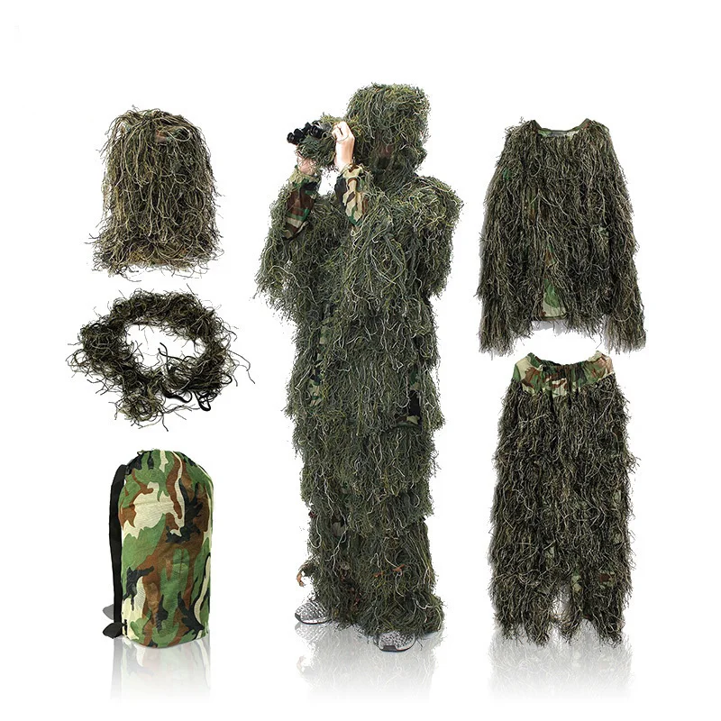 El juego incluye: 1 pantalón, 1 chaqueta, 1 capucha separada, 1 envoltura para rifle, 1 bolsa de almacenamiento