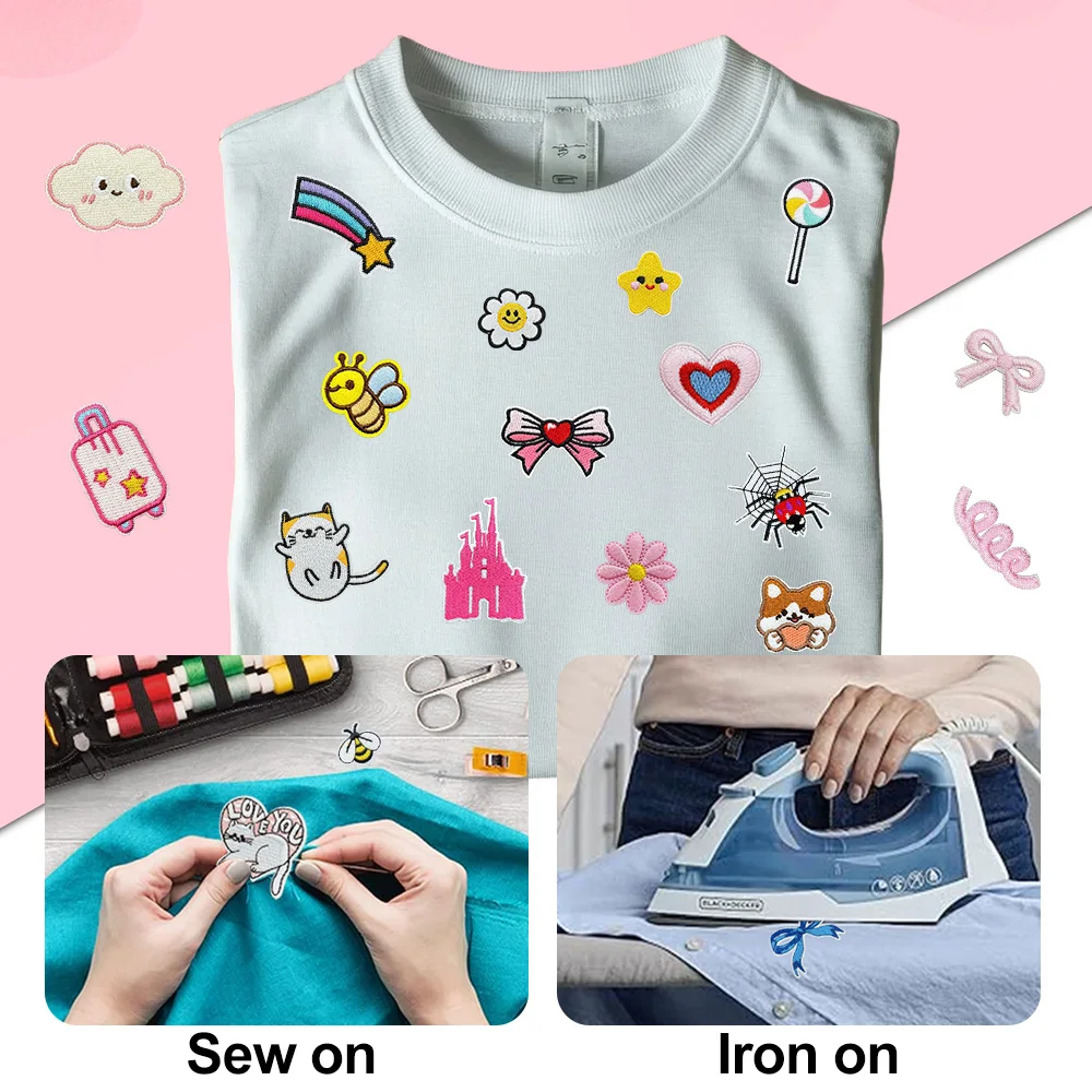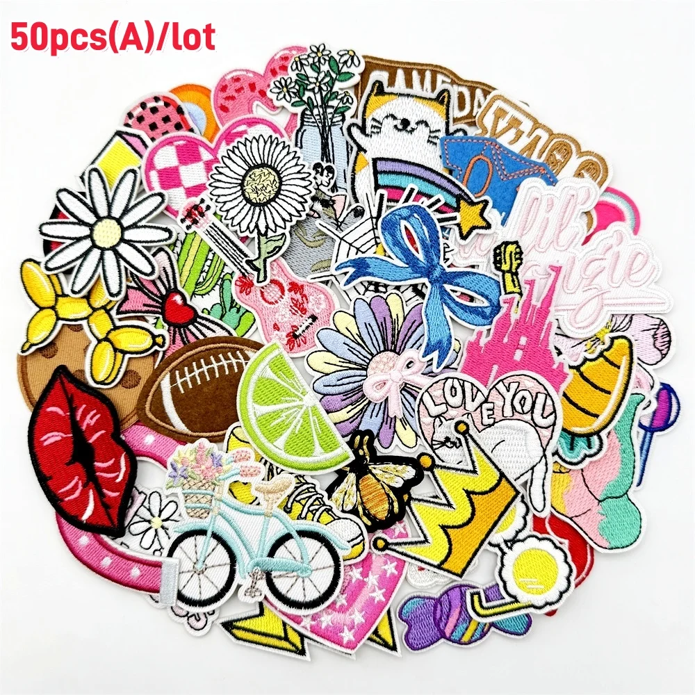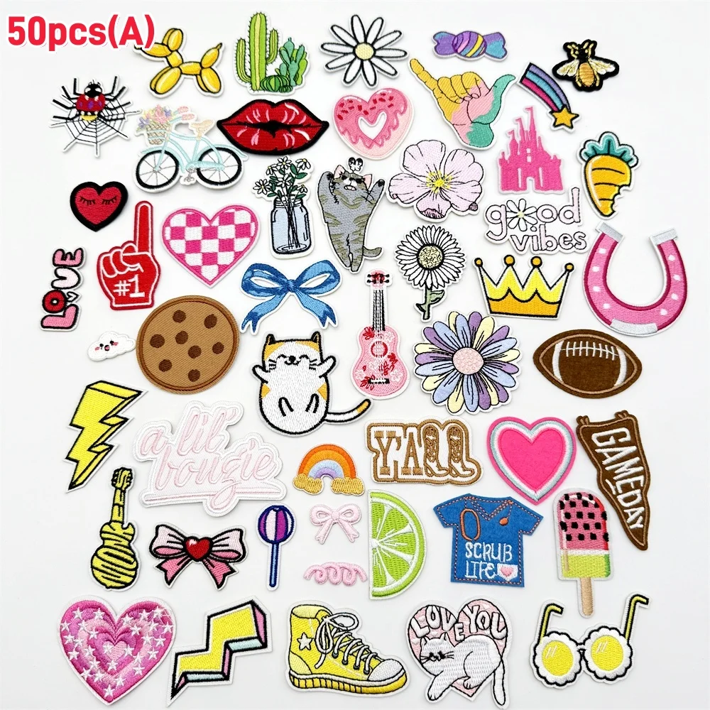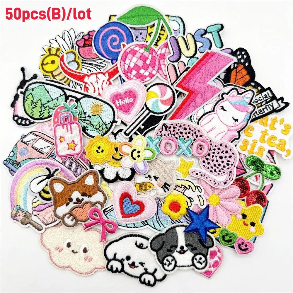 50/100 Uds. Parches bordados surtidos aleatorios dibujos animados DIY planchar/costurar parches pegatinas apliques para ropa vestidos sombrero Jeans