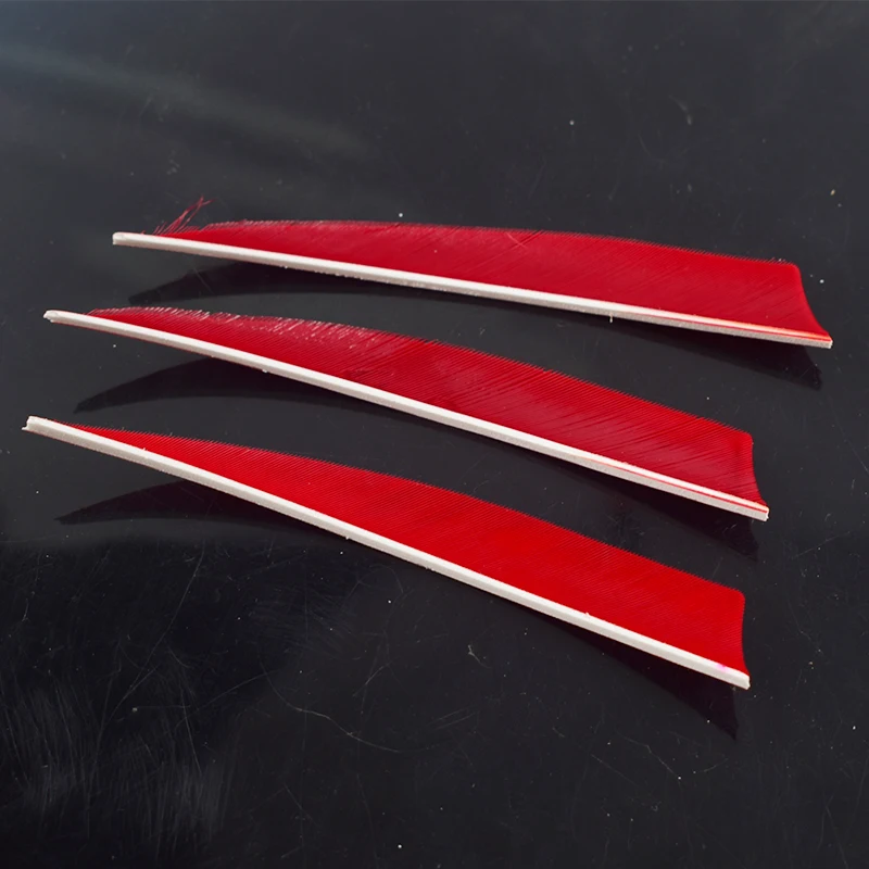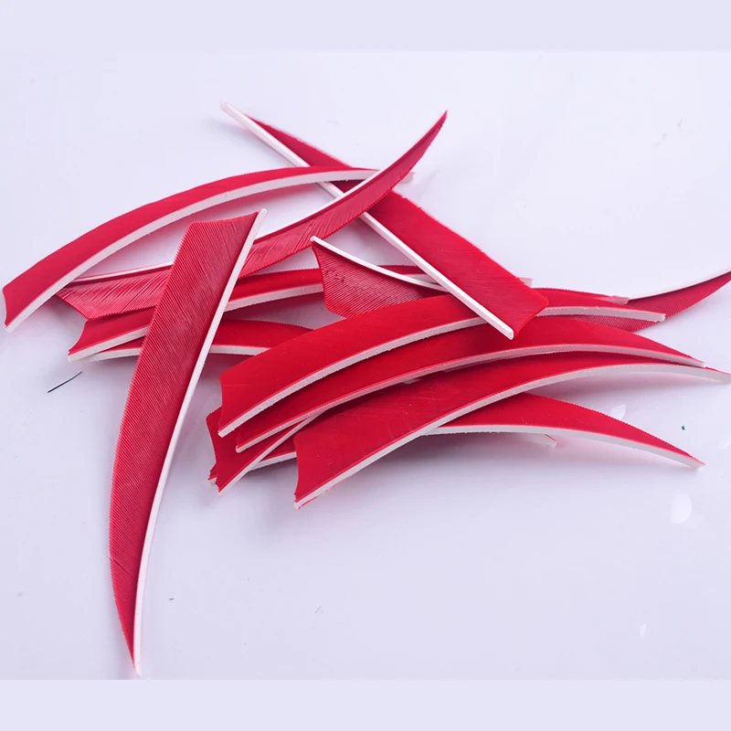 50 Uds. Protector de plumas de 5 pulgadas de alta calidad, paletas cortadas, Color de pluma de pavo, flecha roja, pluma Real, flecha, plumas, paletas, flecha de arco