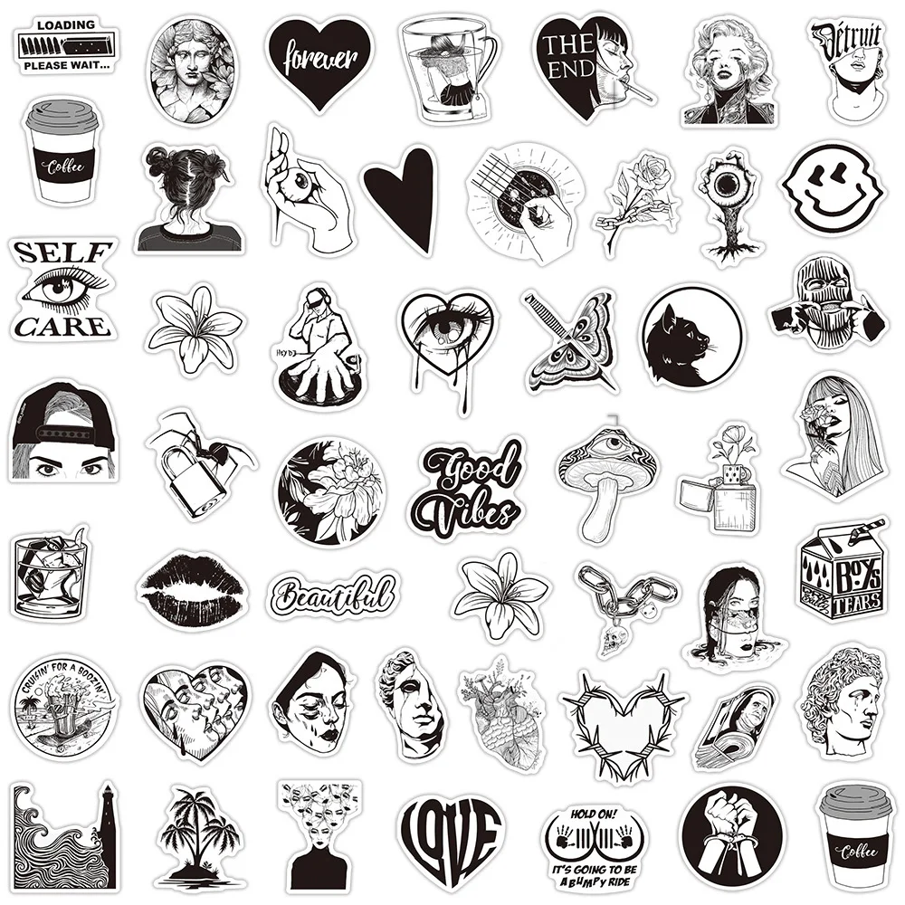 Pegatinas de estilo artístico en blanco y negro con grafiti