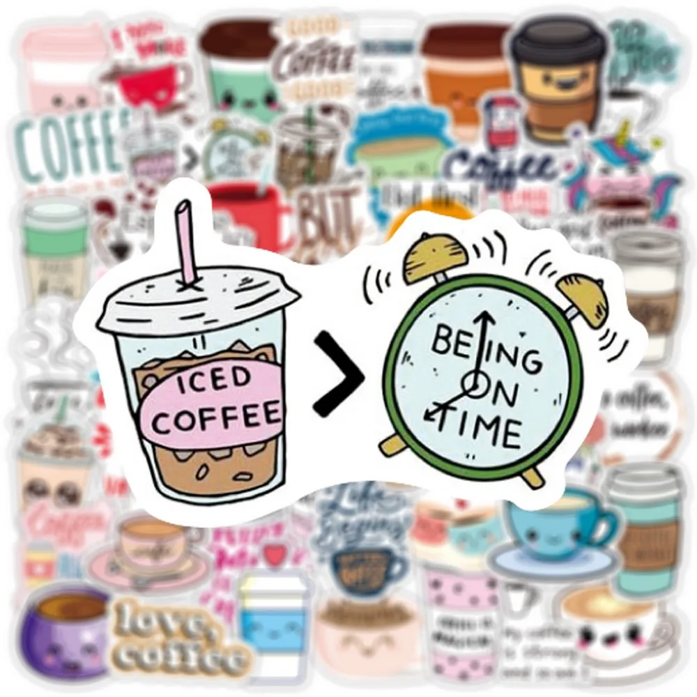 Lindas pegatinas de café Estilos de dibujos animados