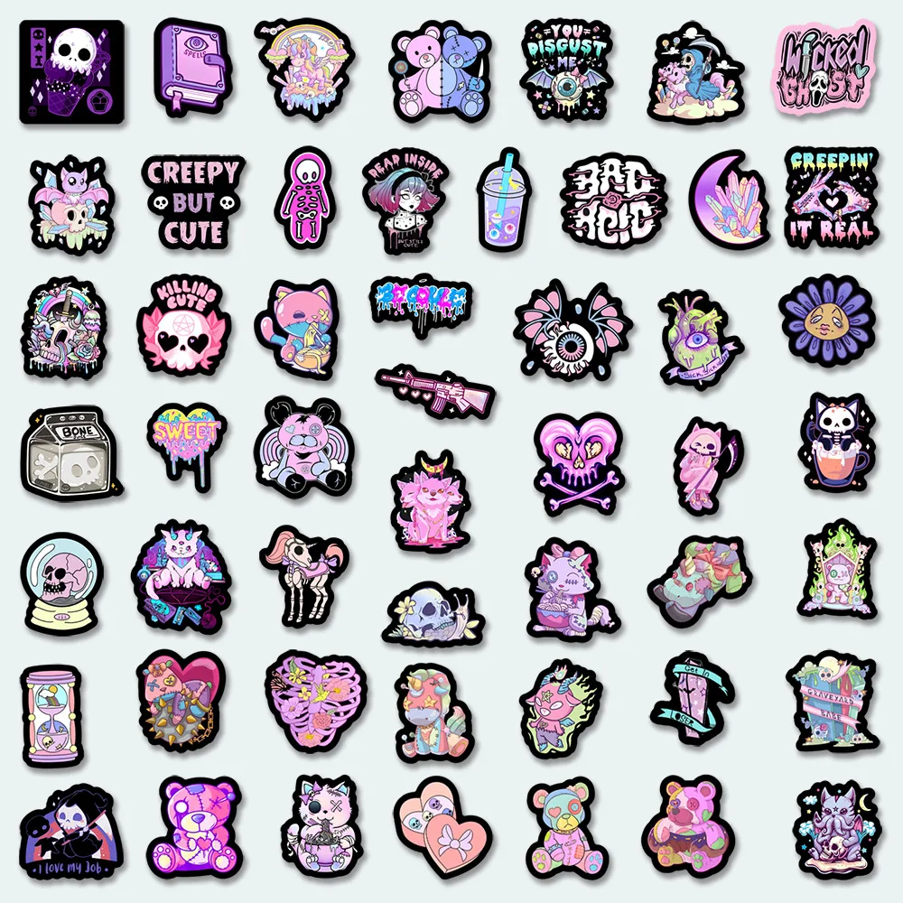 Lindas pegatinas góticas de terror, calcomanías de dibujos animados de calavera de imp de Halloween