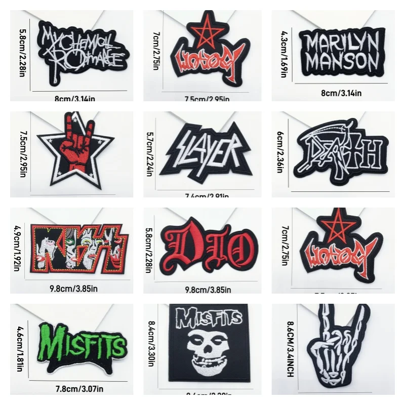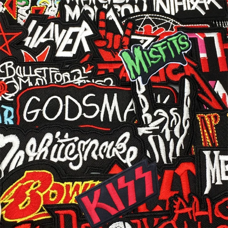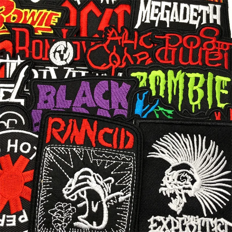 50 unids/lote música Punk Rock para coser planchar en parches parche bordado de letras para ropa apliques de banda costura chaqueta Jeans