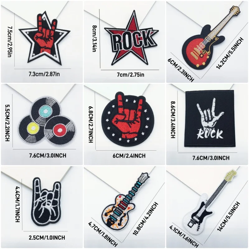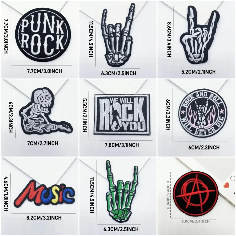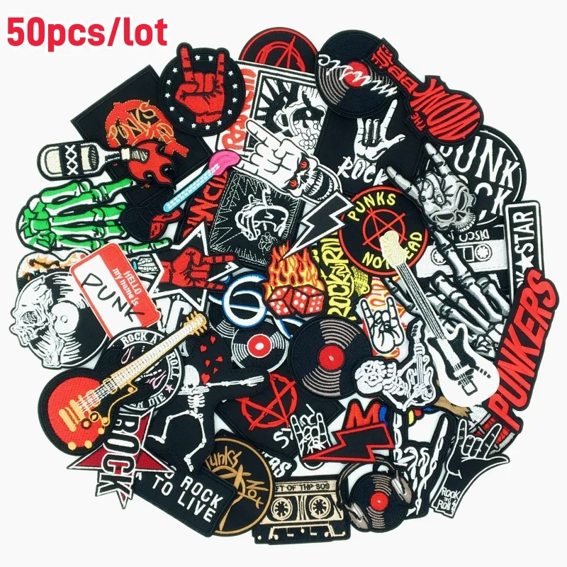 50 unids/lote de parches bordados de banda musical para ropa, parches para planchar, apliques para ropa, chaqueta, pantalones vaqueros, costura, decoración DIY