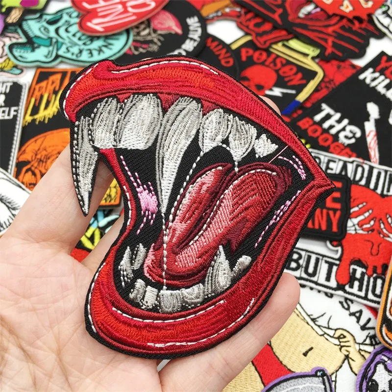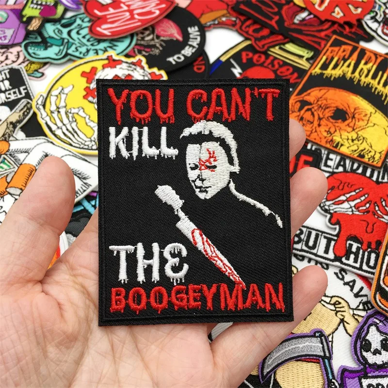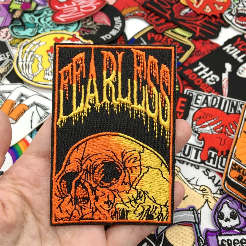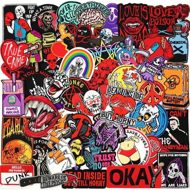 50 unids/lote de parches bordados Punk para ropa, parches de hierro DIY para apliques de ropa, chaqueta, pantalones vaqueros, pegatinas