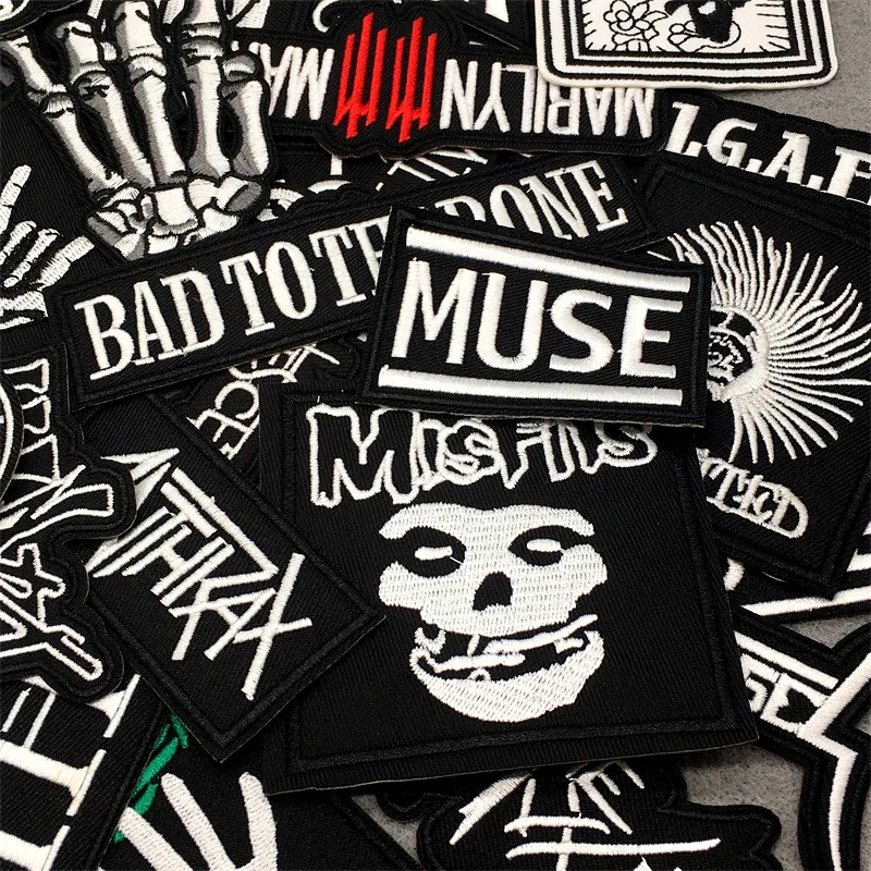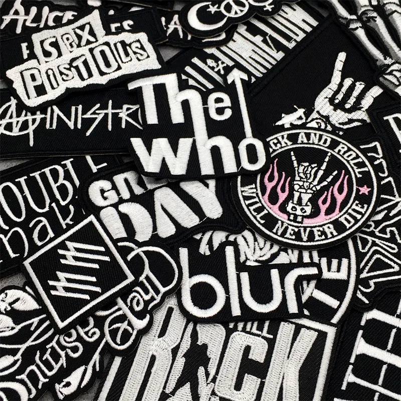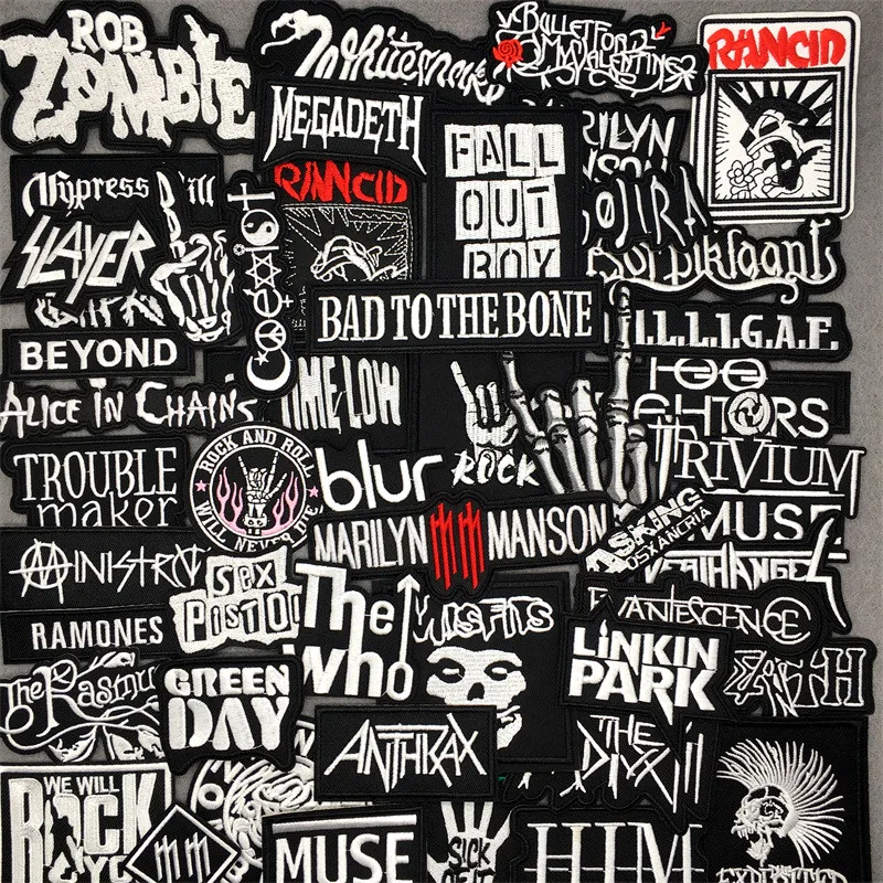 50 unids/lote ROCK BAND parches bordados en ropa chaqueta Jeans DIY parches para planchar para ropa pegatinas apliques rayas