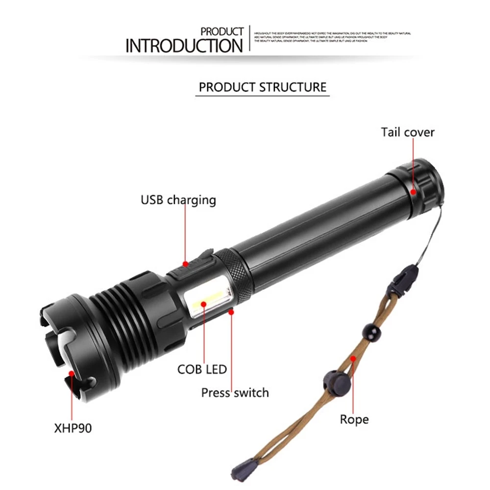 Linterna de iluminación de alto brillo de 5000 lúmenes con zoom de alta potencia