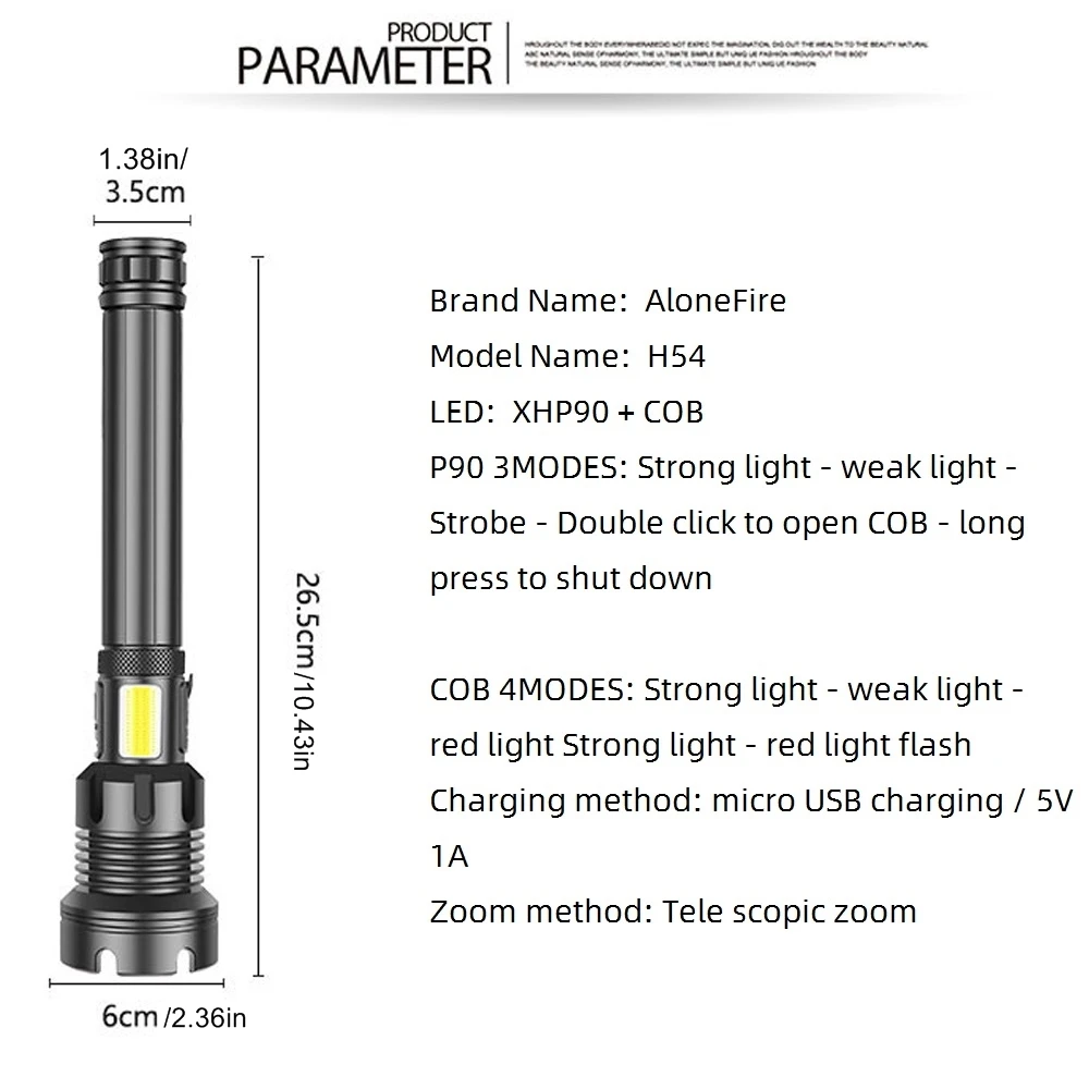 5.COB 4 MODOS: Luz fuerte - luz débil - luz roja Luz fuerte - luz roja flash