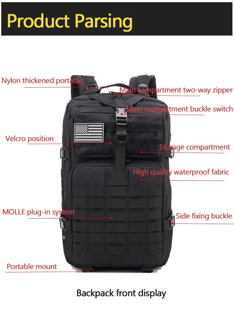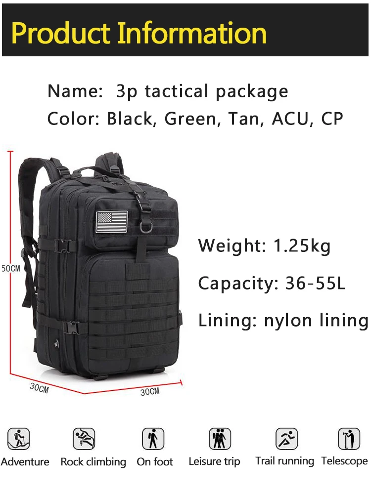 Mochila impermeable de nailon de 50L para senderismo, pesca, caza, mochila para exteriores, deportes tácticos, Camping y senderismo
