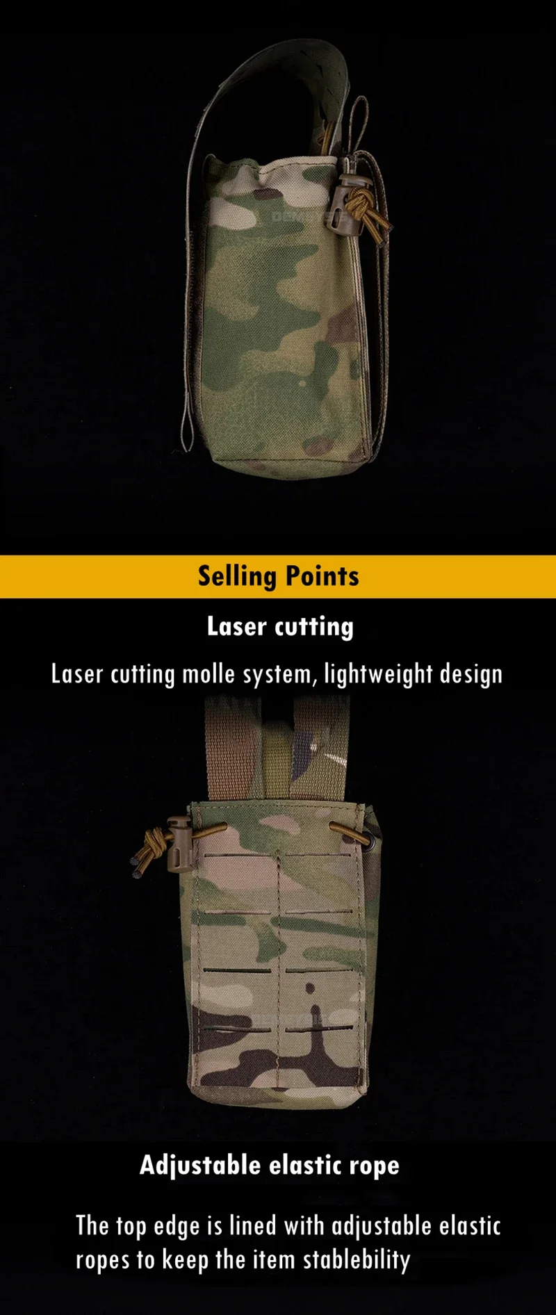 ●Diseño molle de corte por láser, diseño liviano y de perfil bajo. Las correas traseras cortadas con láser pueden ser compatibles con la plataforma Molle.