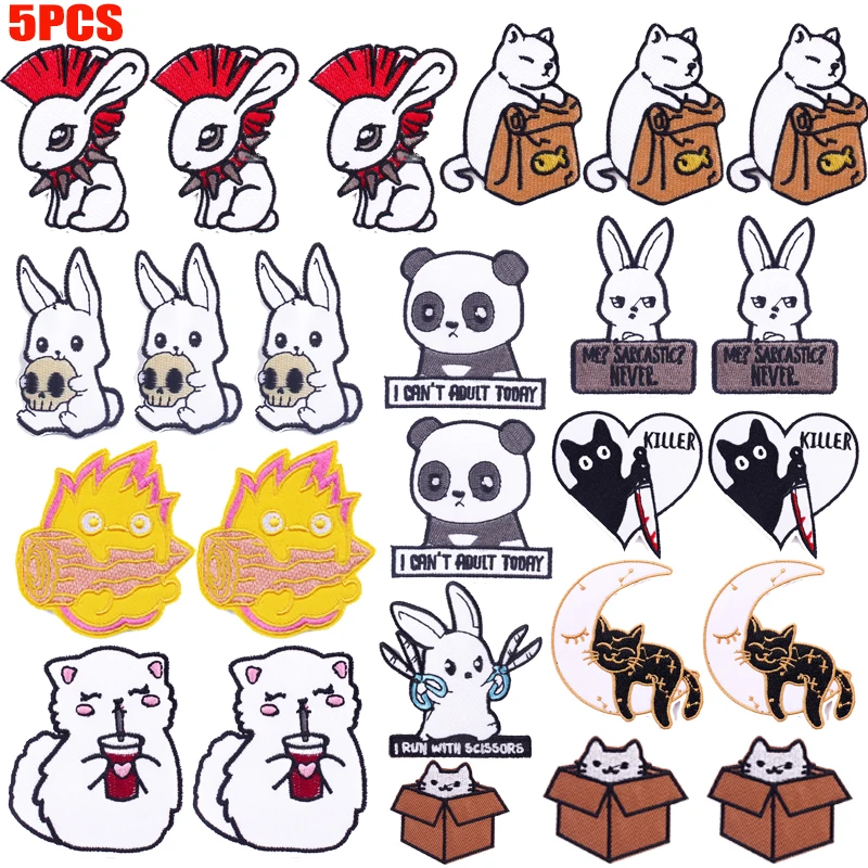5PCS/set Cartoon Animals Patch Rabbit Cat Embroidered Patches Iron On Patches For Clothing Jackets Jeans Backpack Sew Stickers