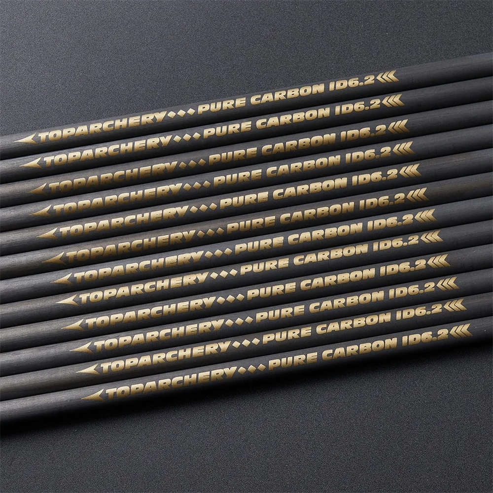 6/12/24 Uds. Eje de flecha de carbono puro columna 300 350 400 500 600 ID 6,2 mm para caza al aire libre tiro arco compuesto recurvo