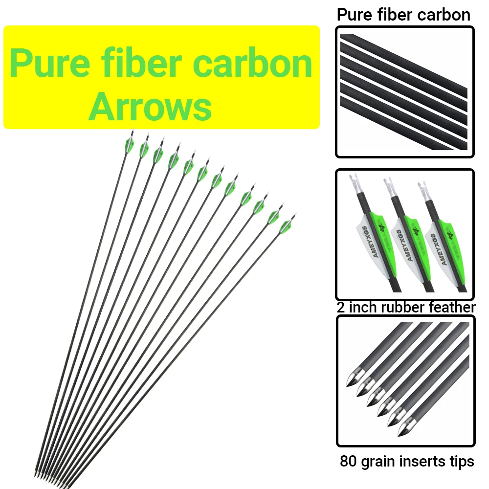 6/12 Uds 32" flechas eje de carbono puro columna 600 ID4.2mm flecha de tiro con arco paletas de goma arco caza objetivo práctica flecha de tiro