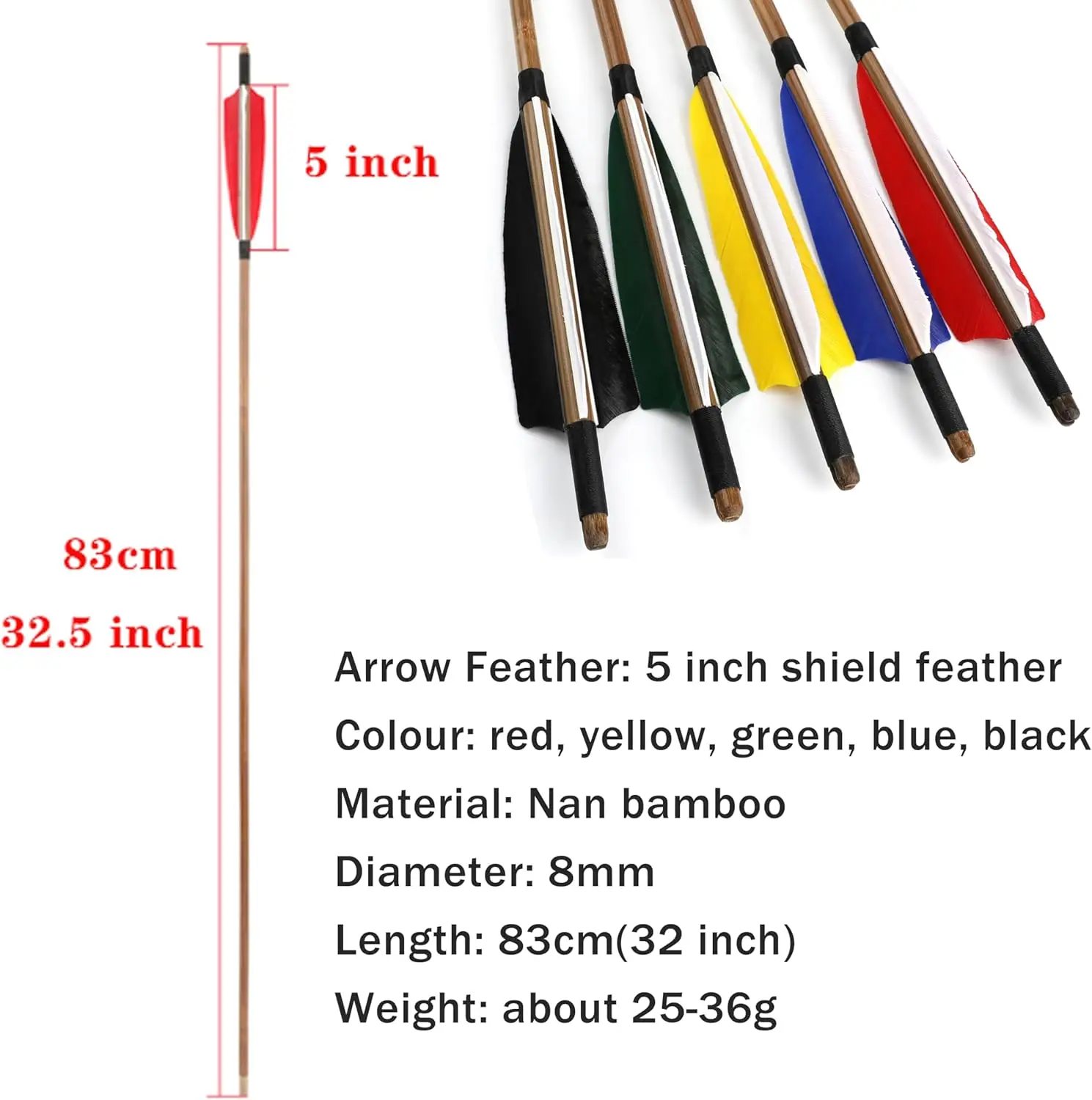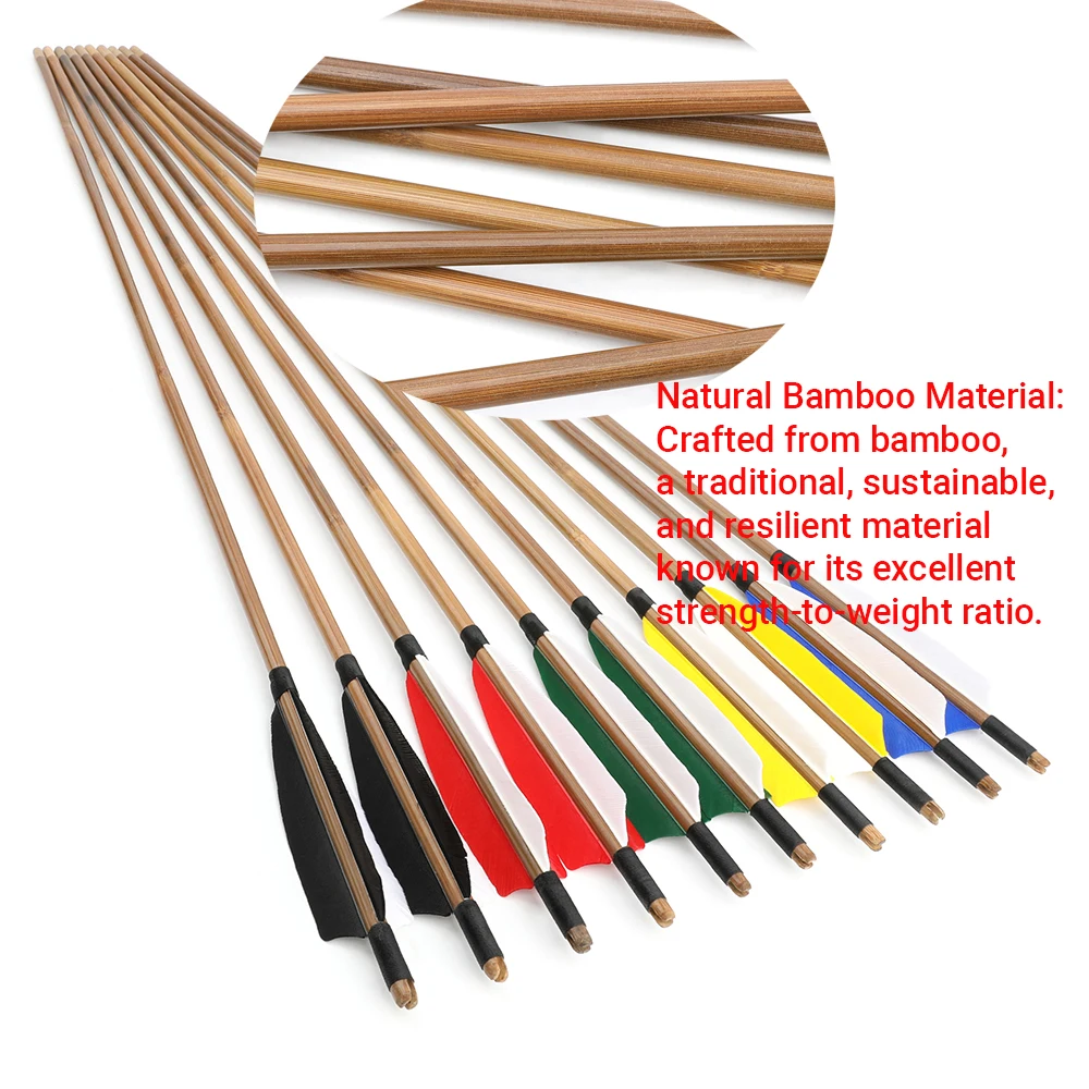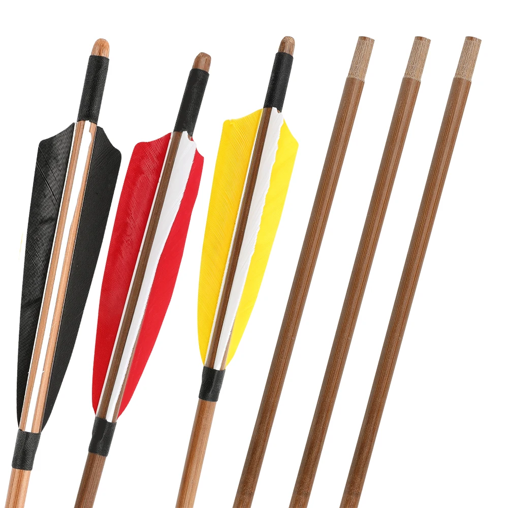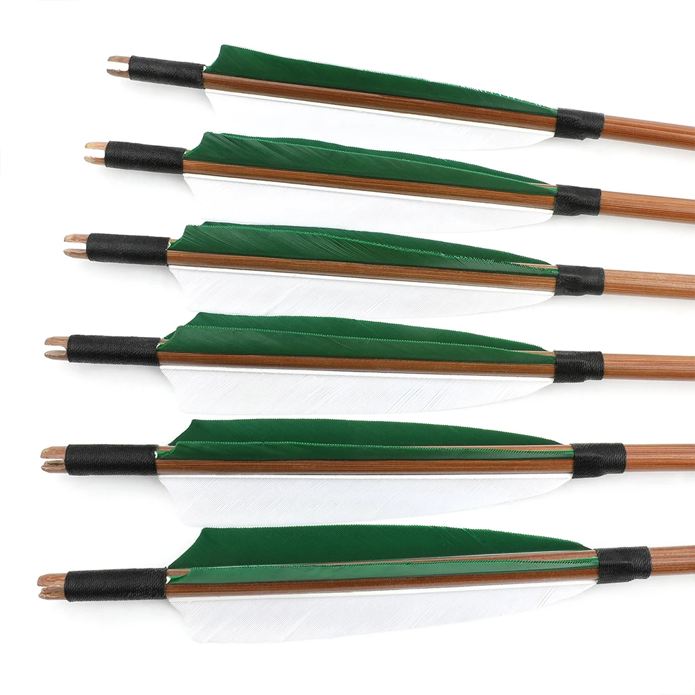 6/12 Uds arco tradicional tiro con arco flechas de bambú 32,5 pulgadas OD 8mm eje de flecha pluma de pavo arco largo arco recurvo tiro caza
