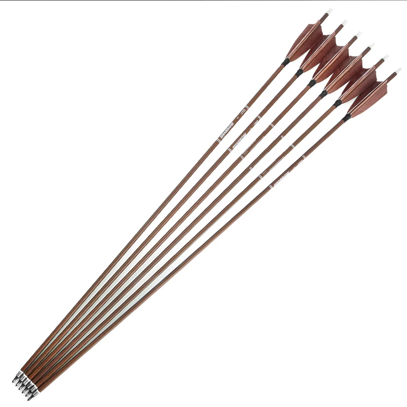 Nombre: Flecha de carbono puro con vetas de madera (3 piezas de plumas de pavo marrones)
