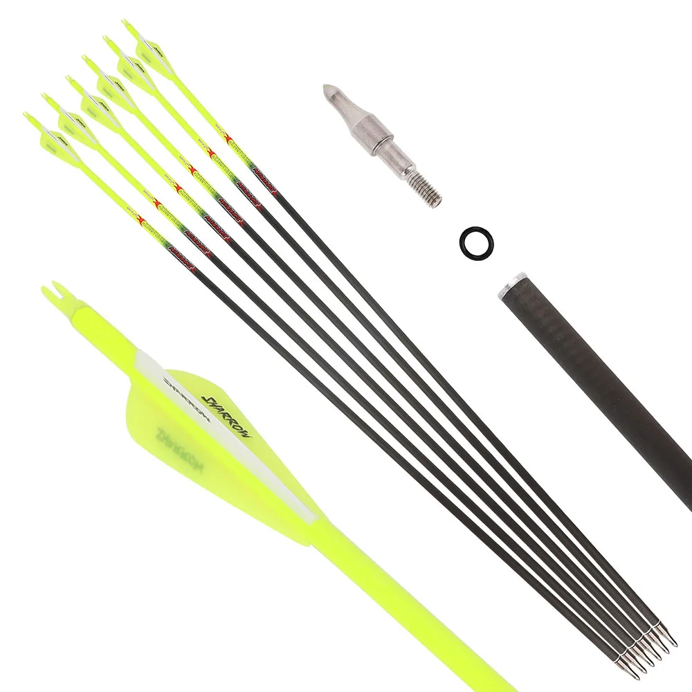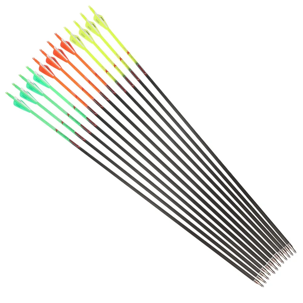 6/12 Uds flechas de carbono puro para tiro con arco 32 pulgadas ID6.2mm columna vertebral 300-600 paletas de 3 pulgadas 0.006 enderezamiento para caza al aire libre