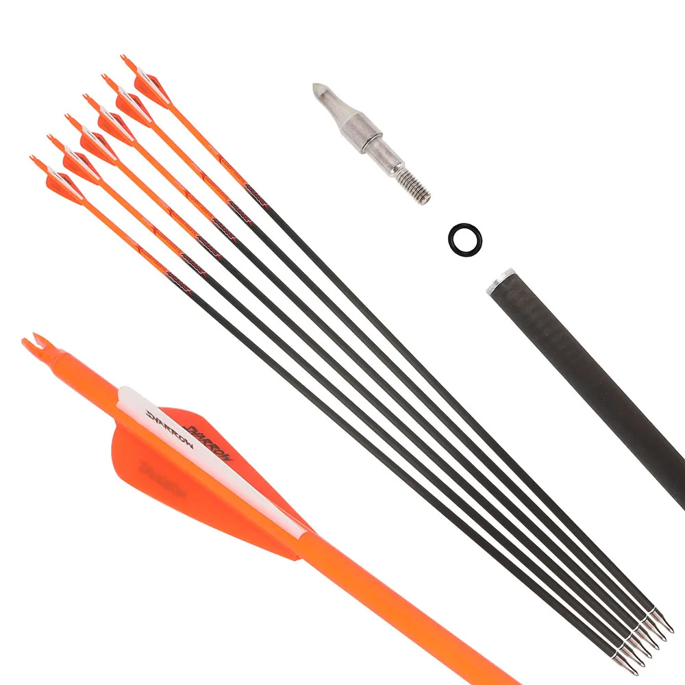 6/12 Uds. Flechas de carbono puro para tiro con arco 32 pulgadas ID6.2mm columna 300-600 3 '' paletas 0,006 recto para caza al aire libre con forma de flecha