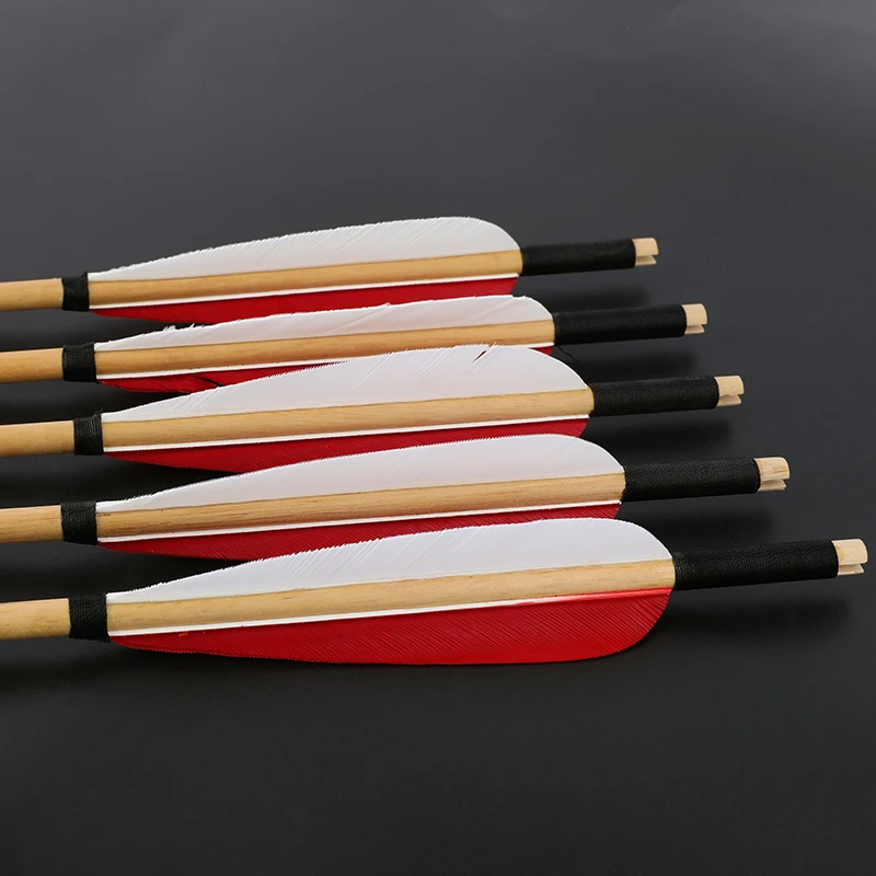 Pluma de flecha: 5 pulgadas 2 rojo 1 pluma de pavo blanca