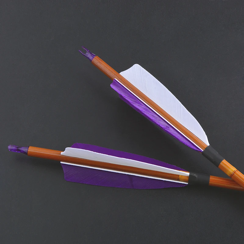Plumas de flecha: 2 plumas de pavo protectoras de 4 pulgadas moradas y 1 blanca