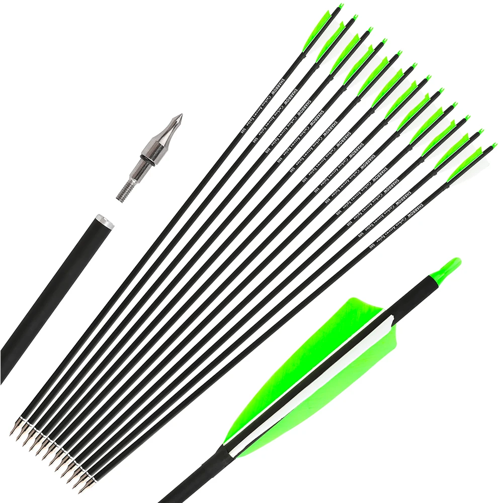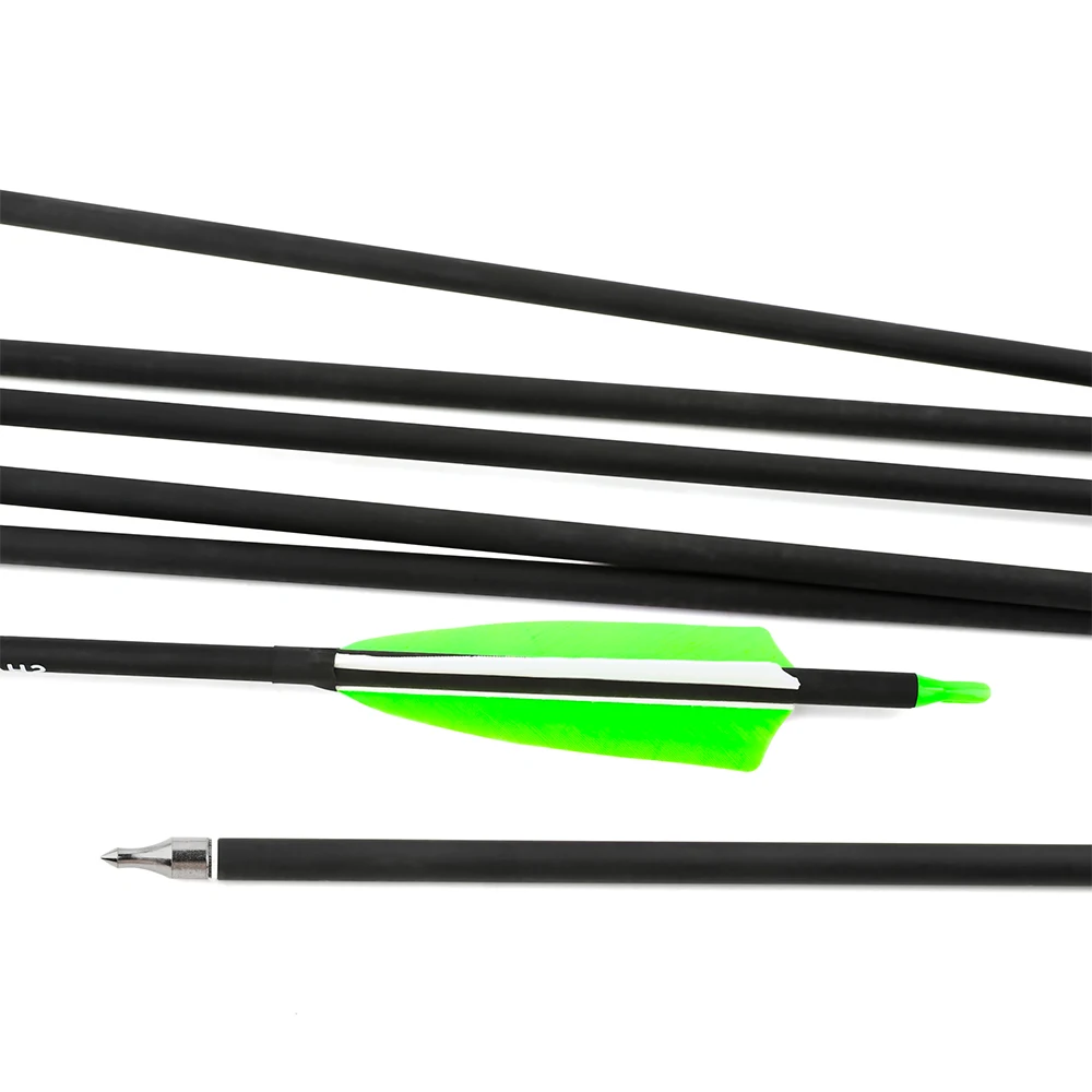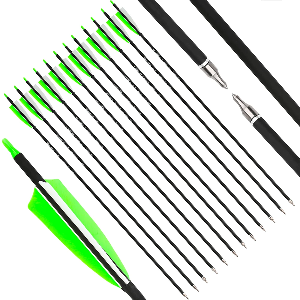 2.Configuración de material premium: utiliza ejes híbridos de carbono combinados con plumas naturales de 4 pulgadas y puntas de flecha de 100 granos, resistencia de equilibrio, construcción liviana y rendimiento aerodinámico.
