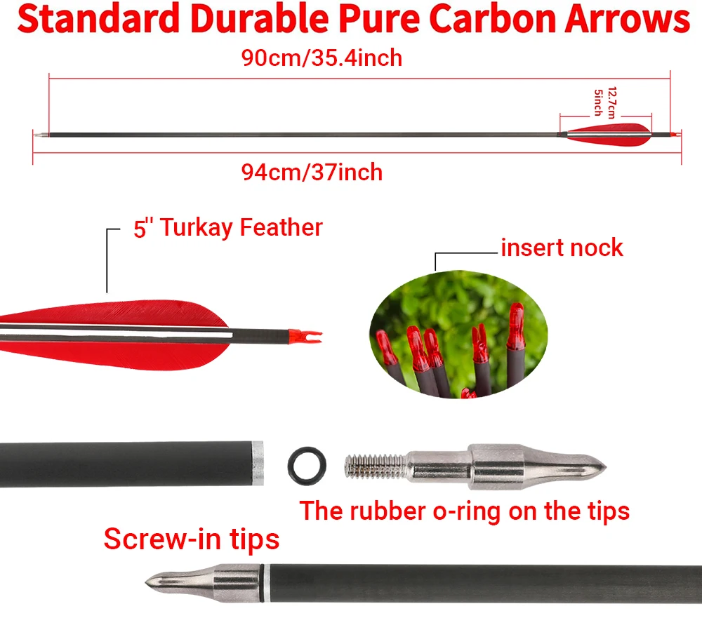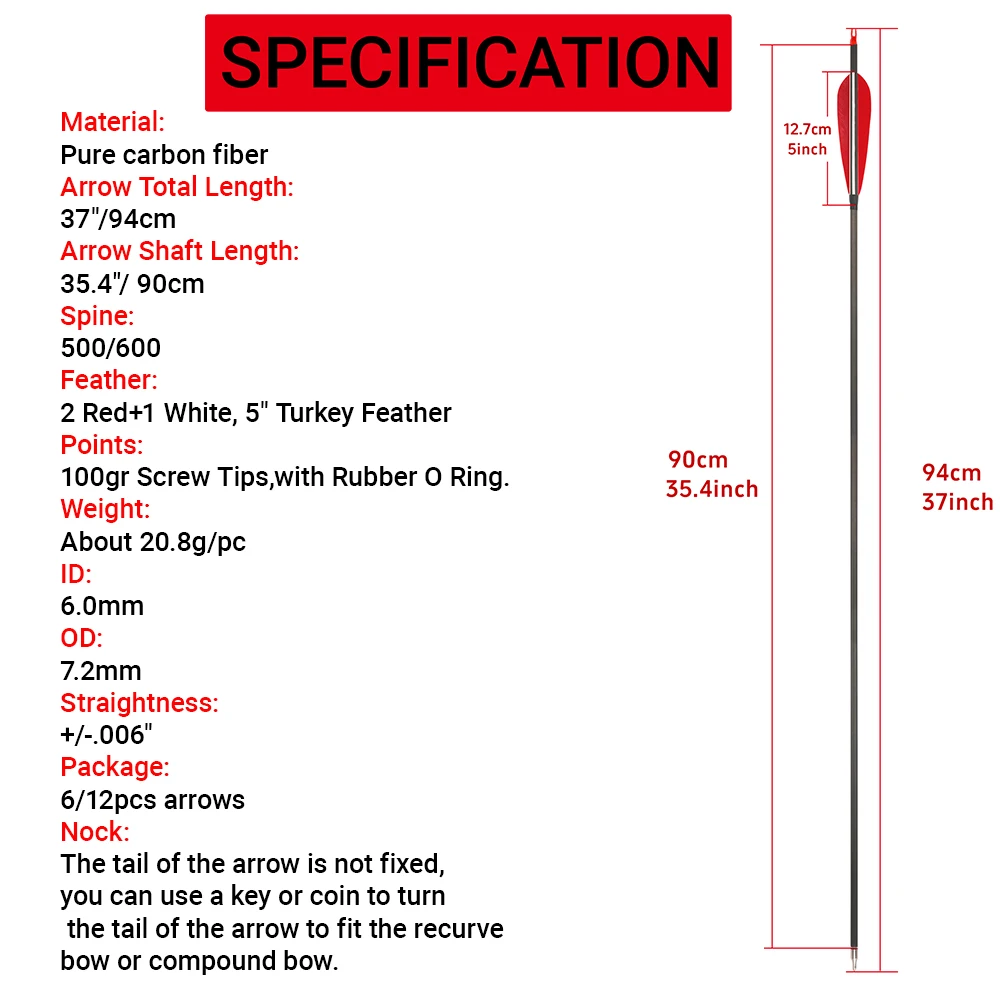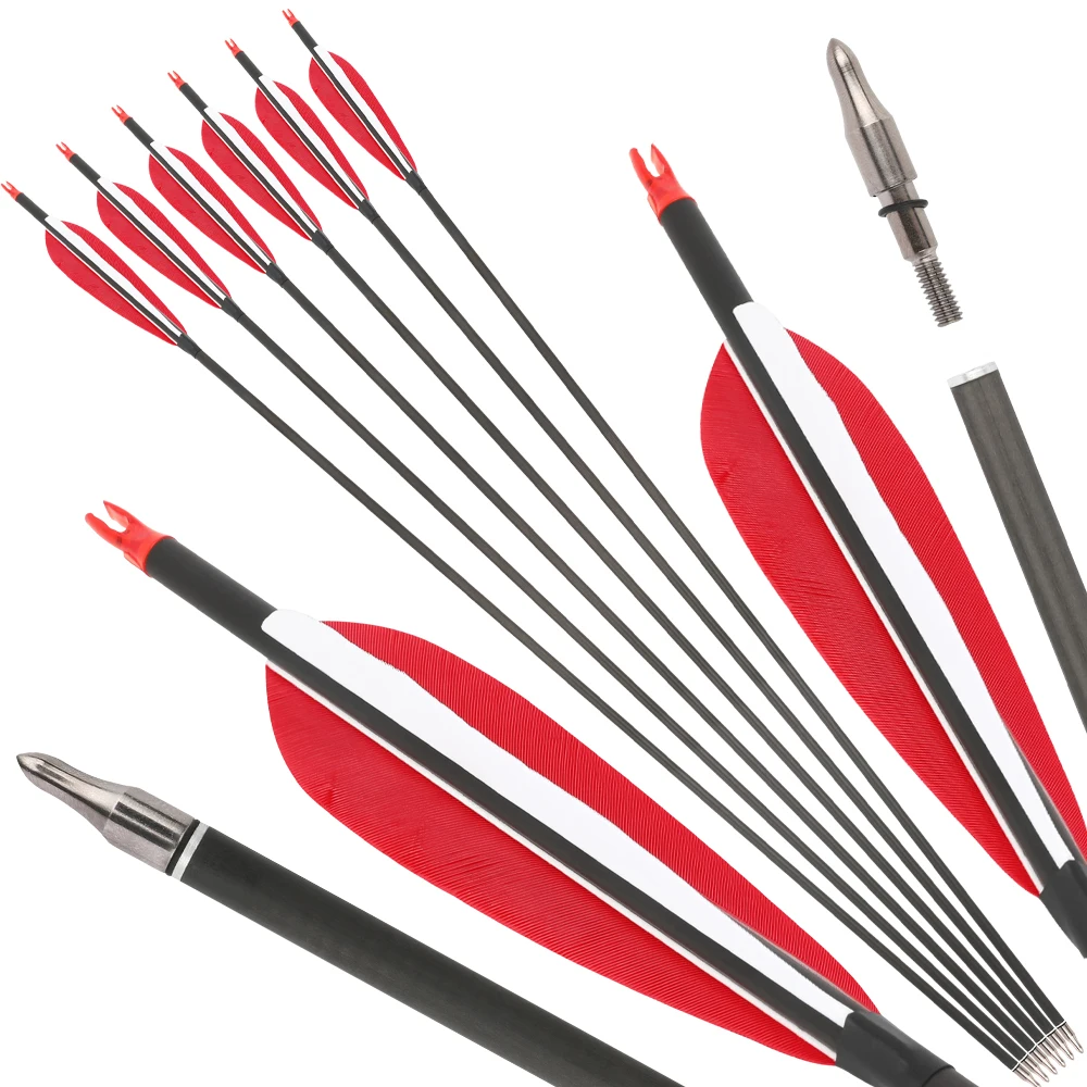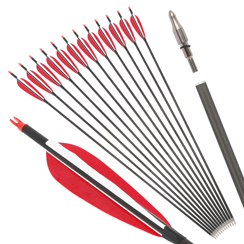 6/12 Uds tiro con arco SP500 600 flecha de carbono puro 37 "flecha ID6.0 mm eje 100Gr punta de flecha arco recurvo arco compuesto caza tiro