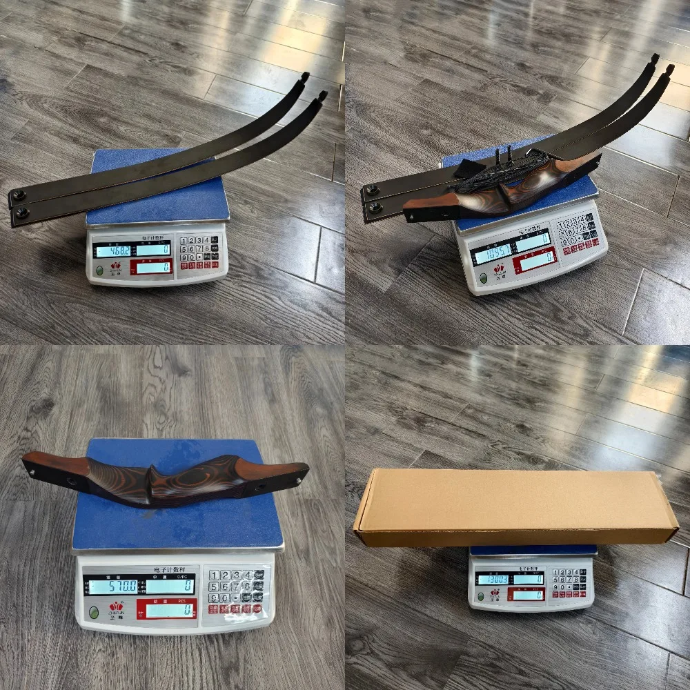 Paquete: 1x mango de arco, 2x extremidades de arco, 1x cuerda de arco, 1x soporte de flecha de piel, 2x tornillos, 1x llave