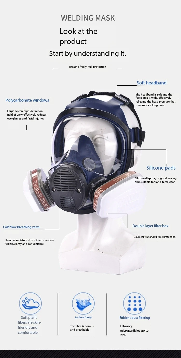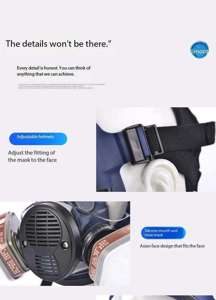 6800 Máscara de gas de silicona protección de cobertura completa pintura en aerosol de cara completa pulido polvo humo pesticida protección química contra gas contra incendios
