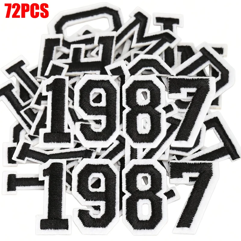 72 Uds combinación A-Z letra inglesa 0-9 número parches bordados sombreros DIY bolsos uniforme bordado parches decorativos de hierro