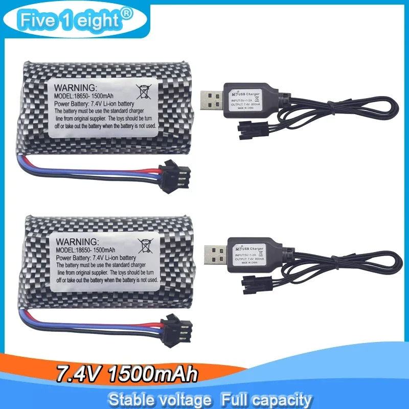 Batería de litio con enchufe SM-3P de 1500 mAh con cable de carga USB para DE43 DE60 RC Racing RC Batería de coche 1575 camión volquete Construcción vehículo de juguete