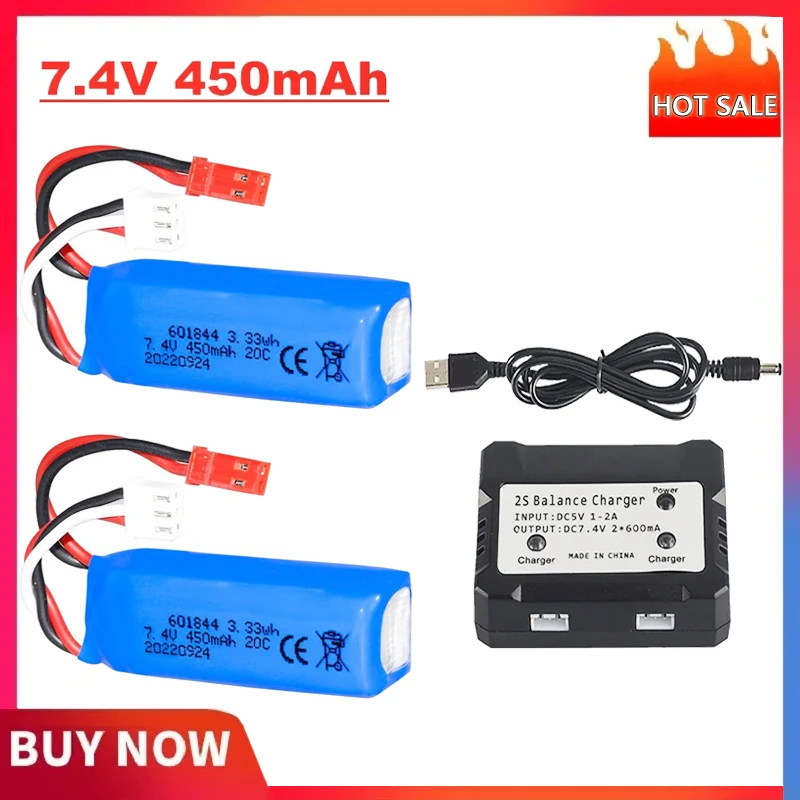 7,4 V 450 mAh 20C Lipo batería JST enchufe para wltoys K969 K979 K989 K999 P929 P939 284131 1:28 accesorios para automóviles RC de alta velocidad