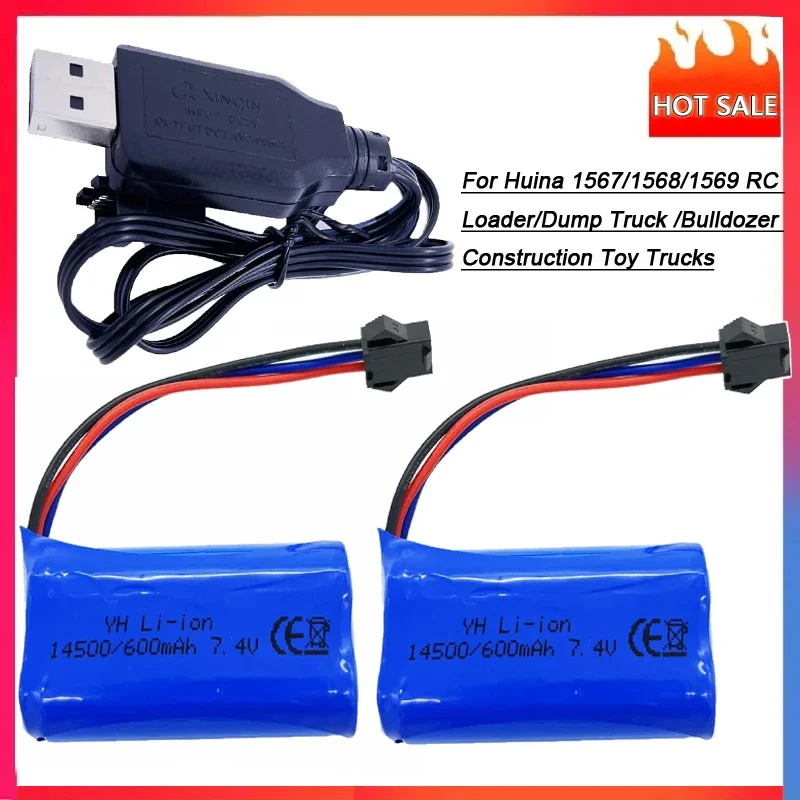 7,4 V 600mAh 14500 batería de iones de litio enchufe de SM-3P para Huina 1567/1568/1569 RC cargador/camión volquete/bulldozer camiones de juguete de construcción