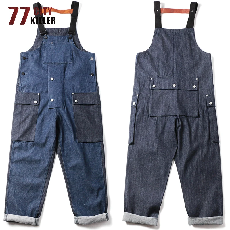77City Killer trajes de estilo Safari hombres Cargo Multi-Bolsillo Patchwork contraste Stitch Denim hombres pantalones mono de trabajo funcional