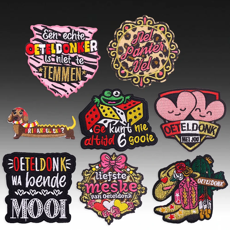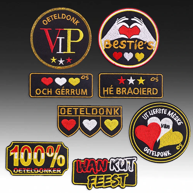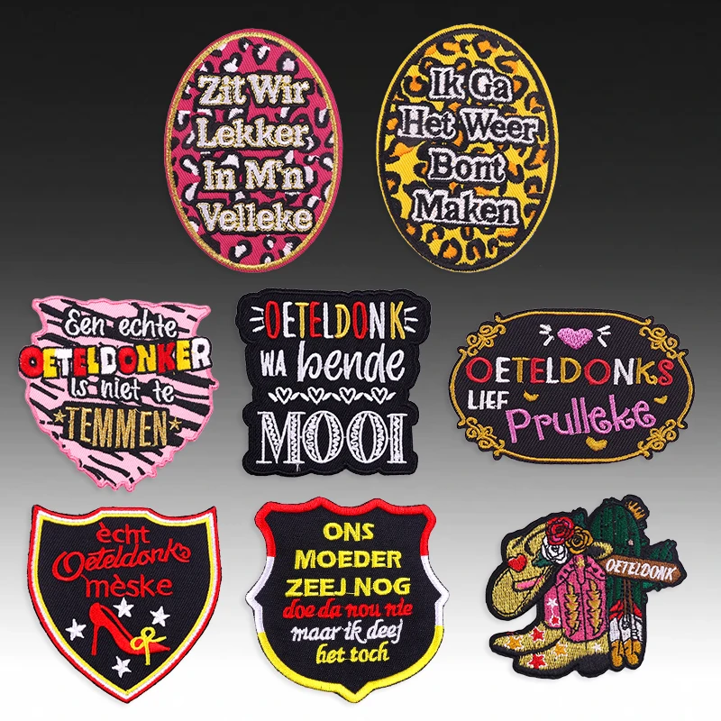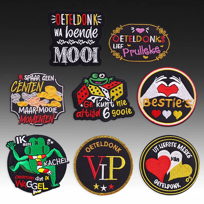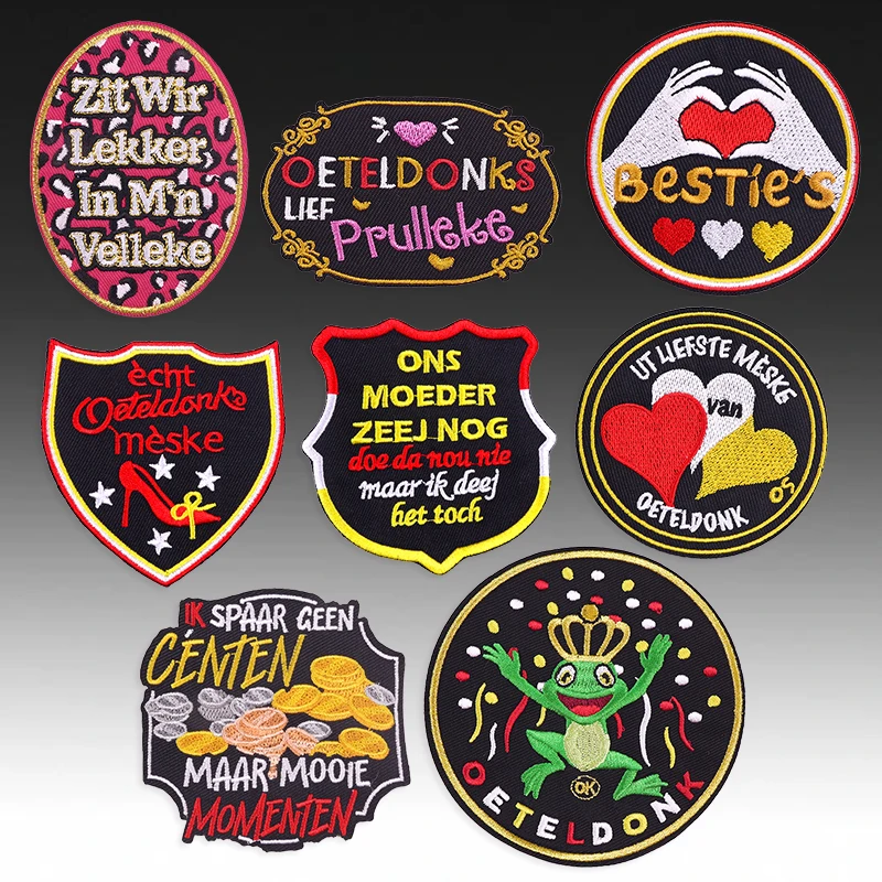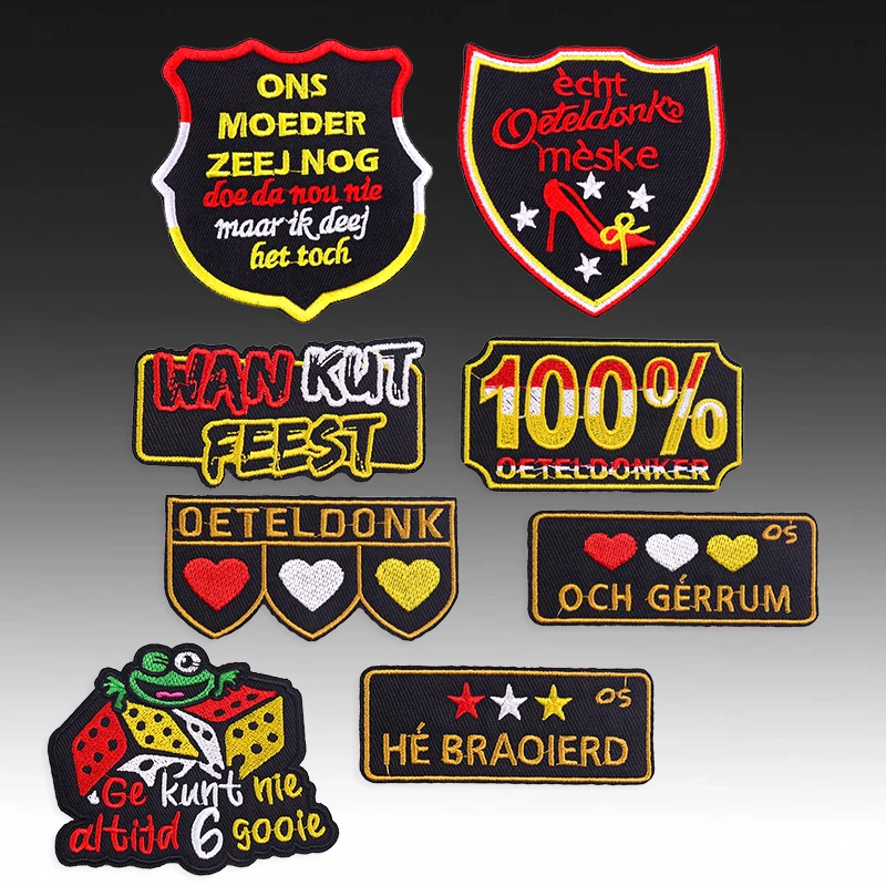8 unids/set Oeteldonk emblema parches de hierro para ropa Países Bajos parches bordados de carnaval para ropa apliques de costura DIY