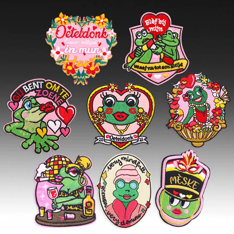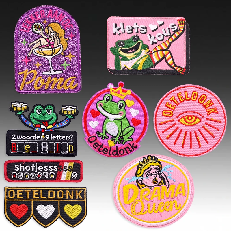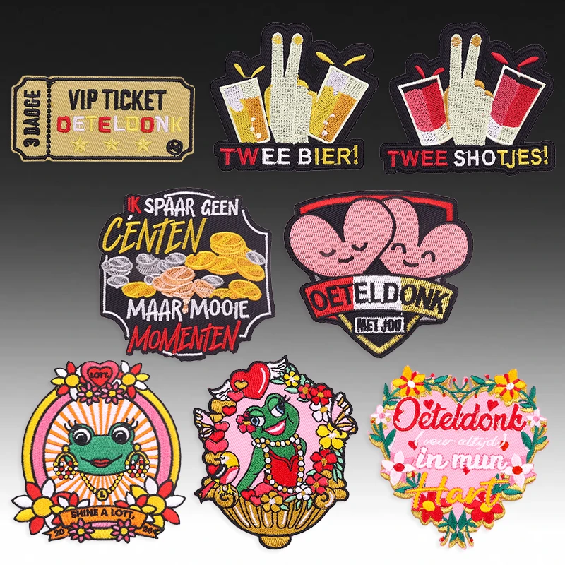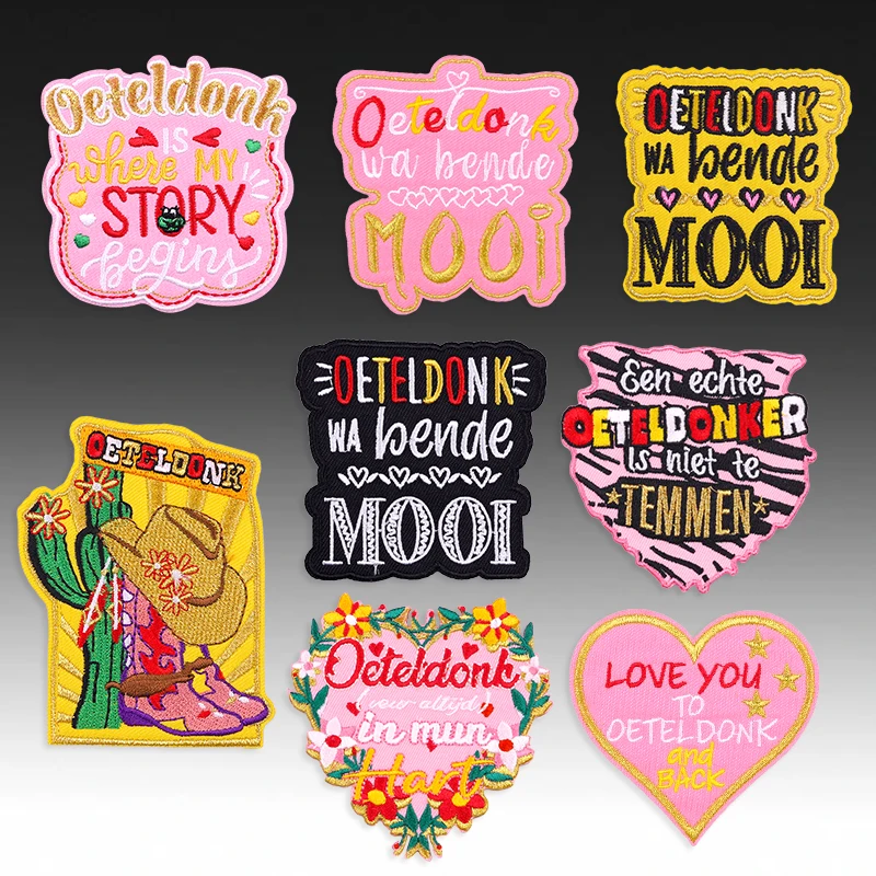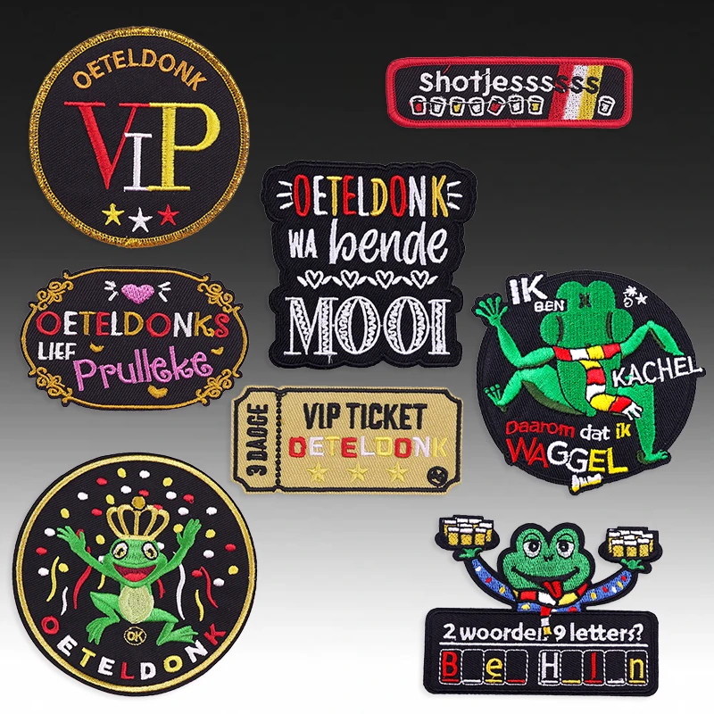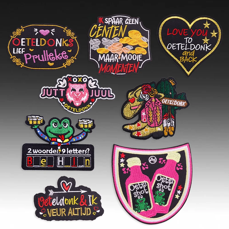 8 unids/set Oeteldonk emblema parches de hierro para ropa Países Bajos parches bordados de carnaval para ropa apliques de costura DIY