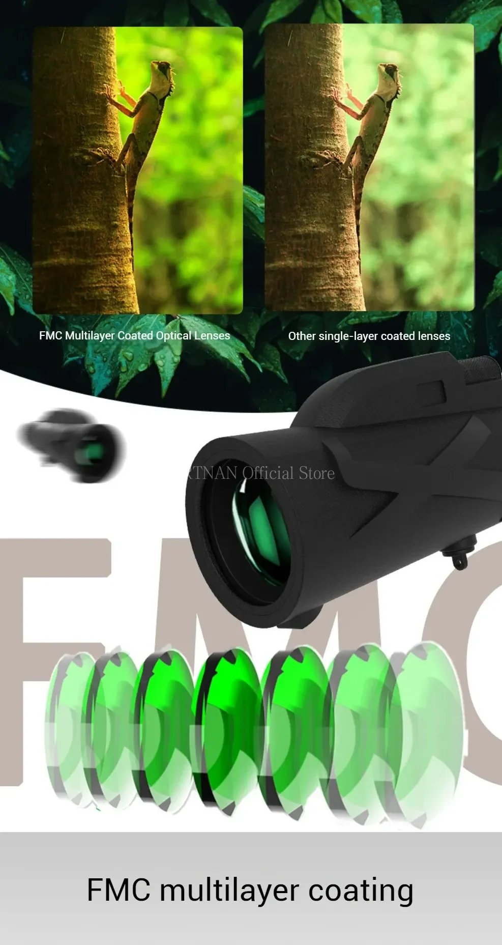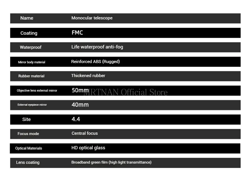 2.El telescopio con zoom está equipado con un prisma BAK-4 y una lente totalmente multicapa, que garantiza una excelente transmisión de luz y brillo.Transmitancia hasta 99,5% de visibilidad.