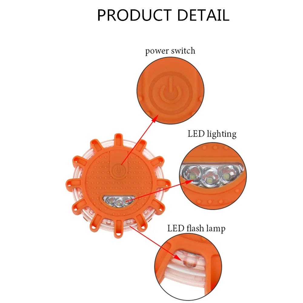 6. There are 9 patterns for this flare: Rotating, Vibrant, Flashing, Switching, SOS, Steady, Weak, One side, Torch.Can be used in different emergency situations.