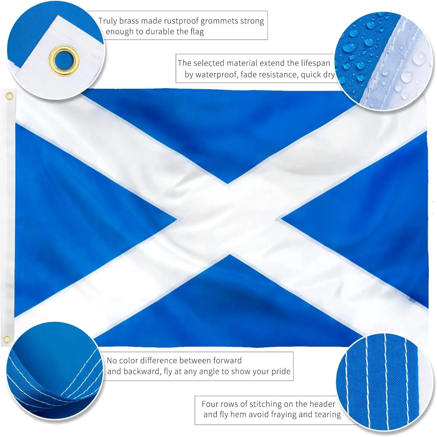 90X150CM Bandera de Scottland bordada cosida 4 filas ojales de costura de bloqueo Color vibrante de larga duración Nylon 210D