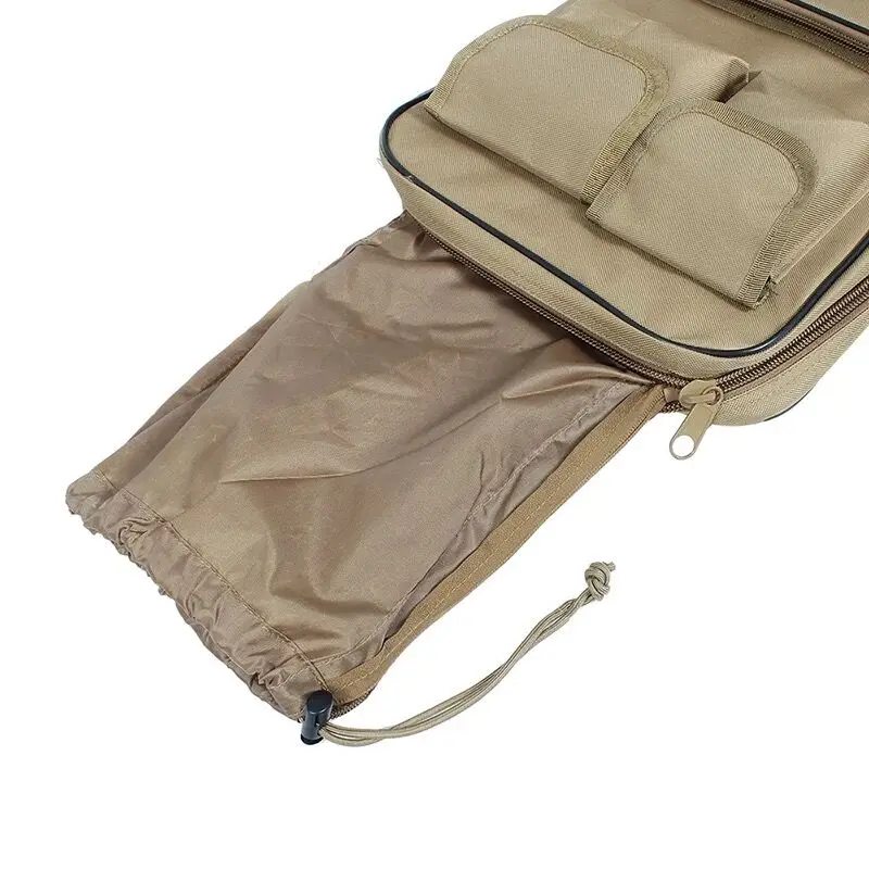 La segunda bolsa para armas puede acomodar un rifle de 60 cm de largo.