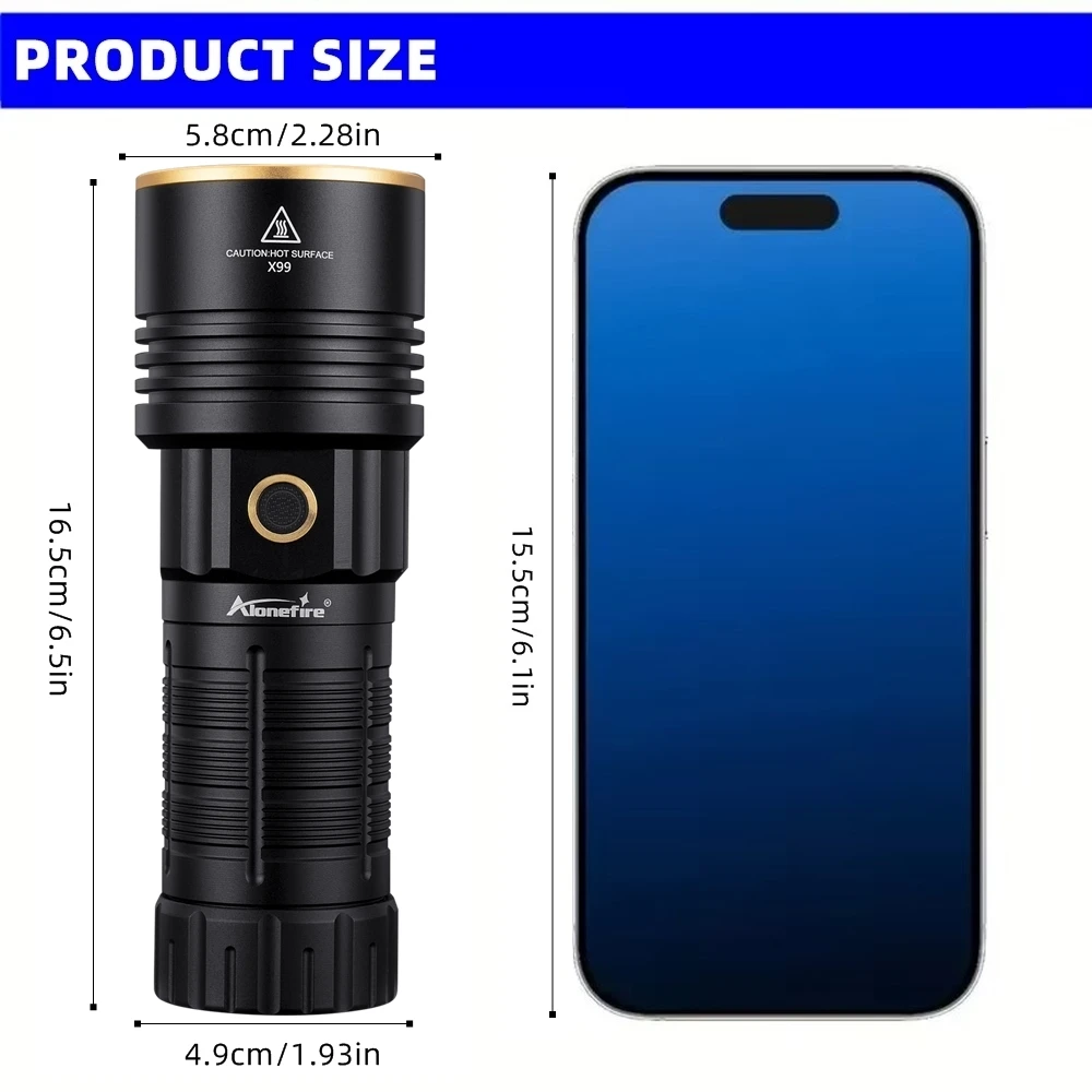 Modo de trabajo: 4 modos: luz fuerte - luz débil - estroboscópica - luz súper brillante (doble clic, cualquier marcha puede hacer doble clic) (en cualquier marcha, mantenga presionado el botón para apagar la linterna).