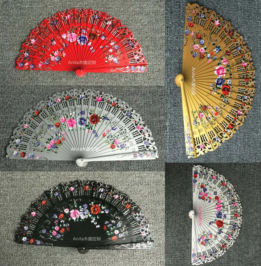 Abanico de flores pintado a mano de estilo español, abanico de madera, regalo de boda de baile personalizado