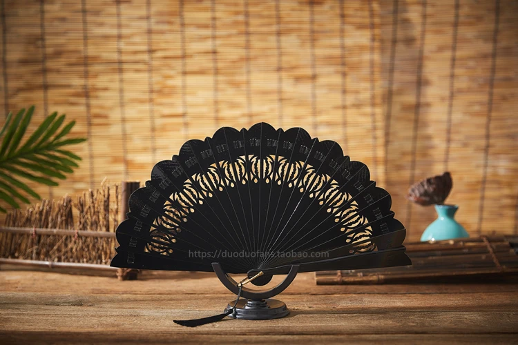 Abanico plegable de mano de estilo español para mujer, abanico de flores púrpuras pintado, abanico de baile de madera