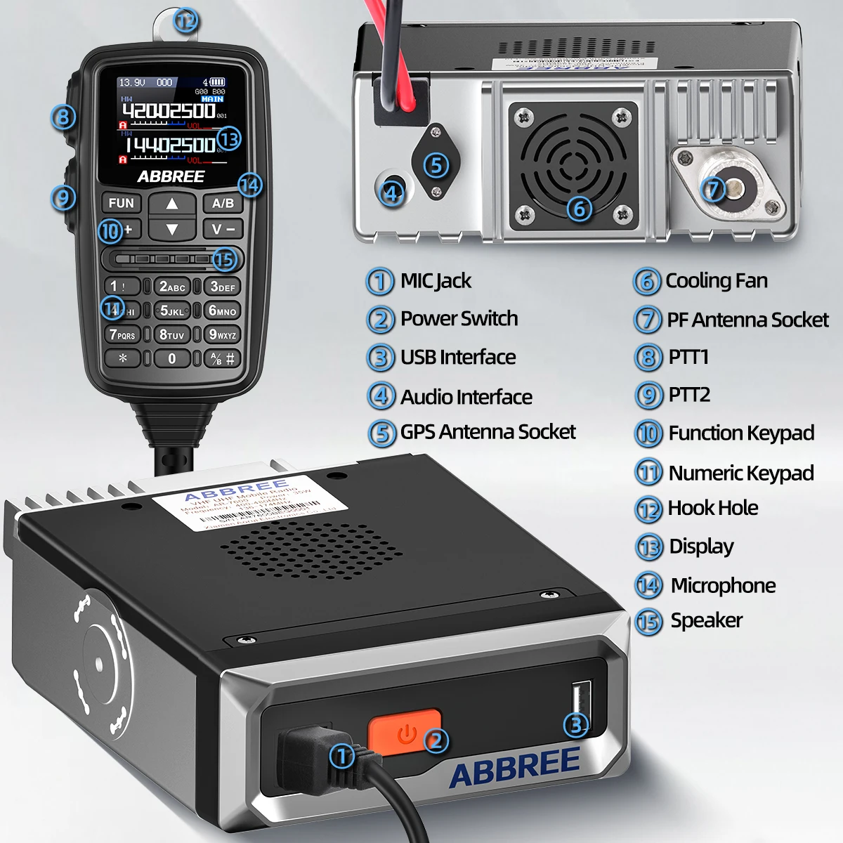 Estación base de radioaficionado multifunción con salida de potencia máxima de 30 W, banda dual, pantalla dual, modo de espera dual, PTT dual, NOAA, banda aérea recibida, pantalla en color HD, 500 canales, función de codificación, alarma de emergencia y DTMF para coordinación de vehículos o uso en equipo., proporcionando comunicación remota clara en la carretera.