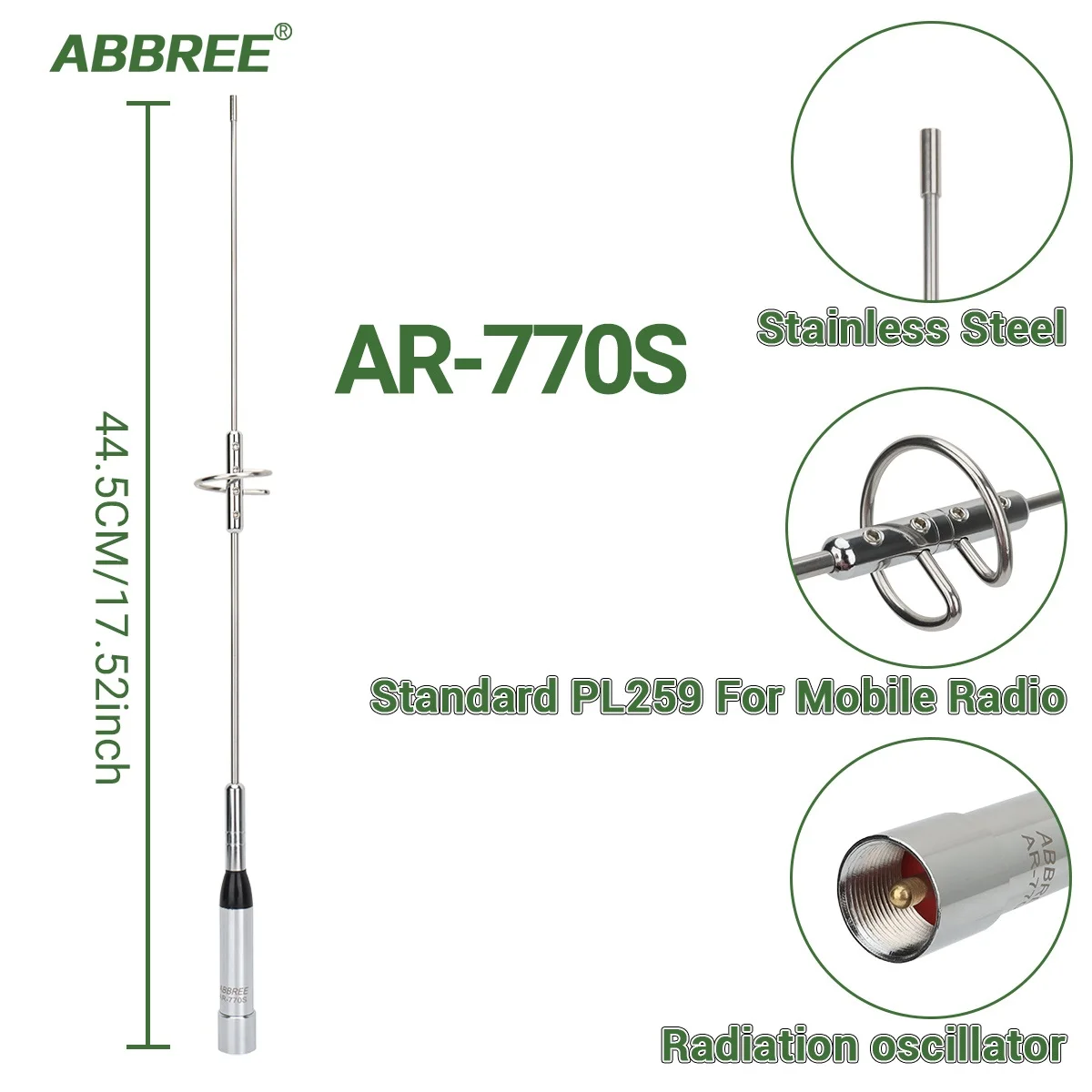 ABBREE AR-770S Antena de doble banda VHF UHF 144/430MHz Alta ganancia para TYT Baojie BJ-218 AR-2520 Amateur Radio de coche Radio móvil