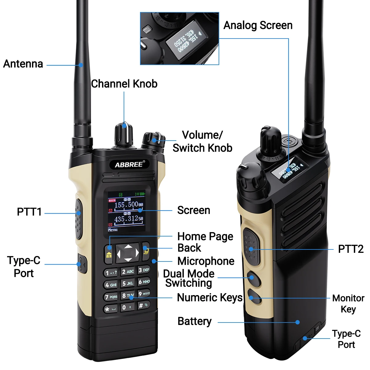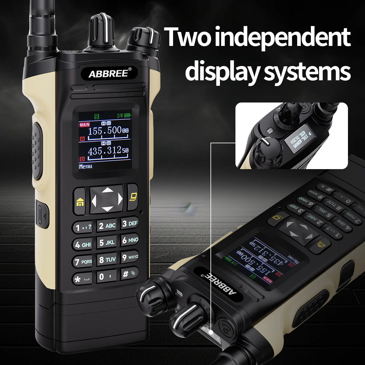 Dos pantallas y dos botones PTT, equipados con un sistema operativo independiente.