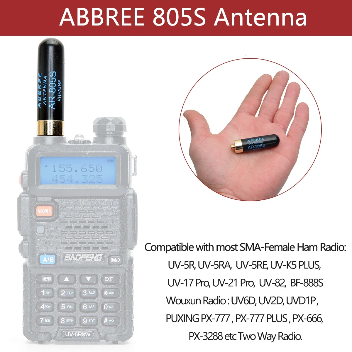 ABBREE AR-805S Mini Walki Talkie corto VHF Antena UHF SMA-Hembra